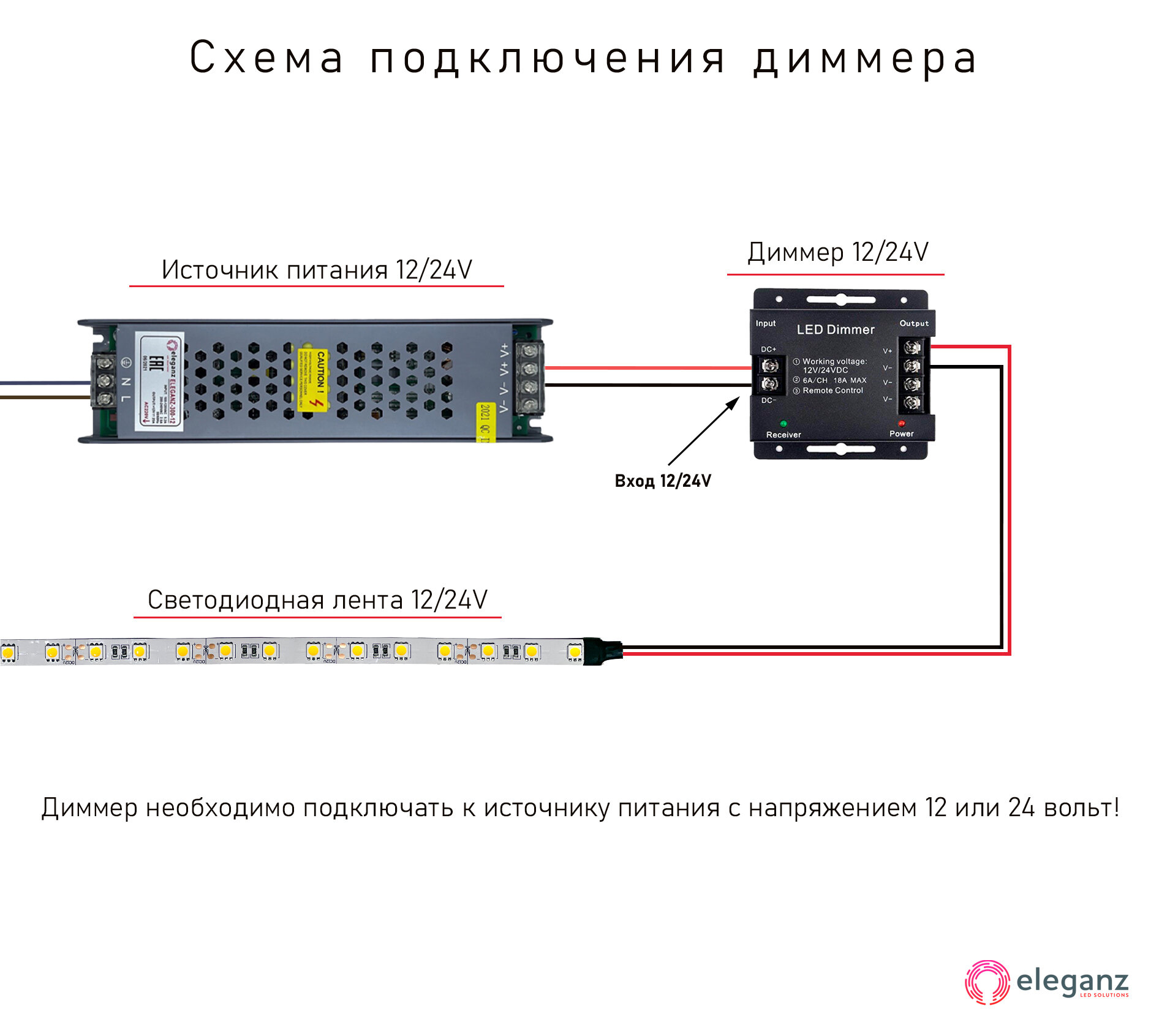 | Подробная комплектация | Сенсорный (TOUCH) контроллер/диммер "Eleganz" для одноцветной светодиодной ленты - 1шт., Пульт ДУ - 1шт. и Руководство по эксплуатации - 1шт. |