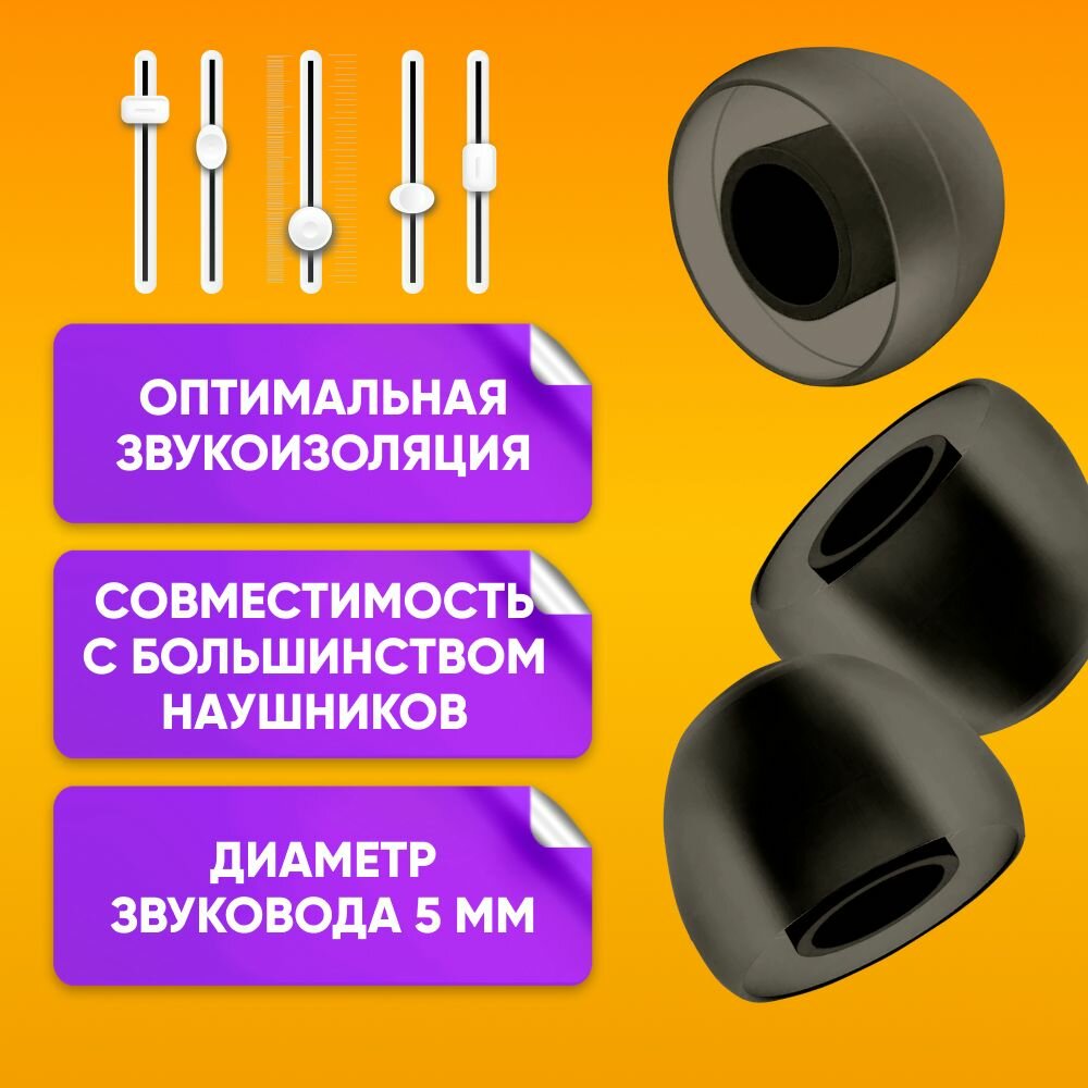 Амбушюры насадки для наушников ALC07, 3 пары размера S M L, черные