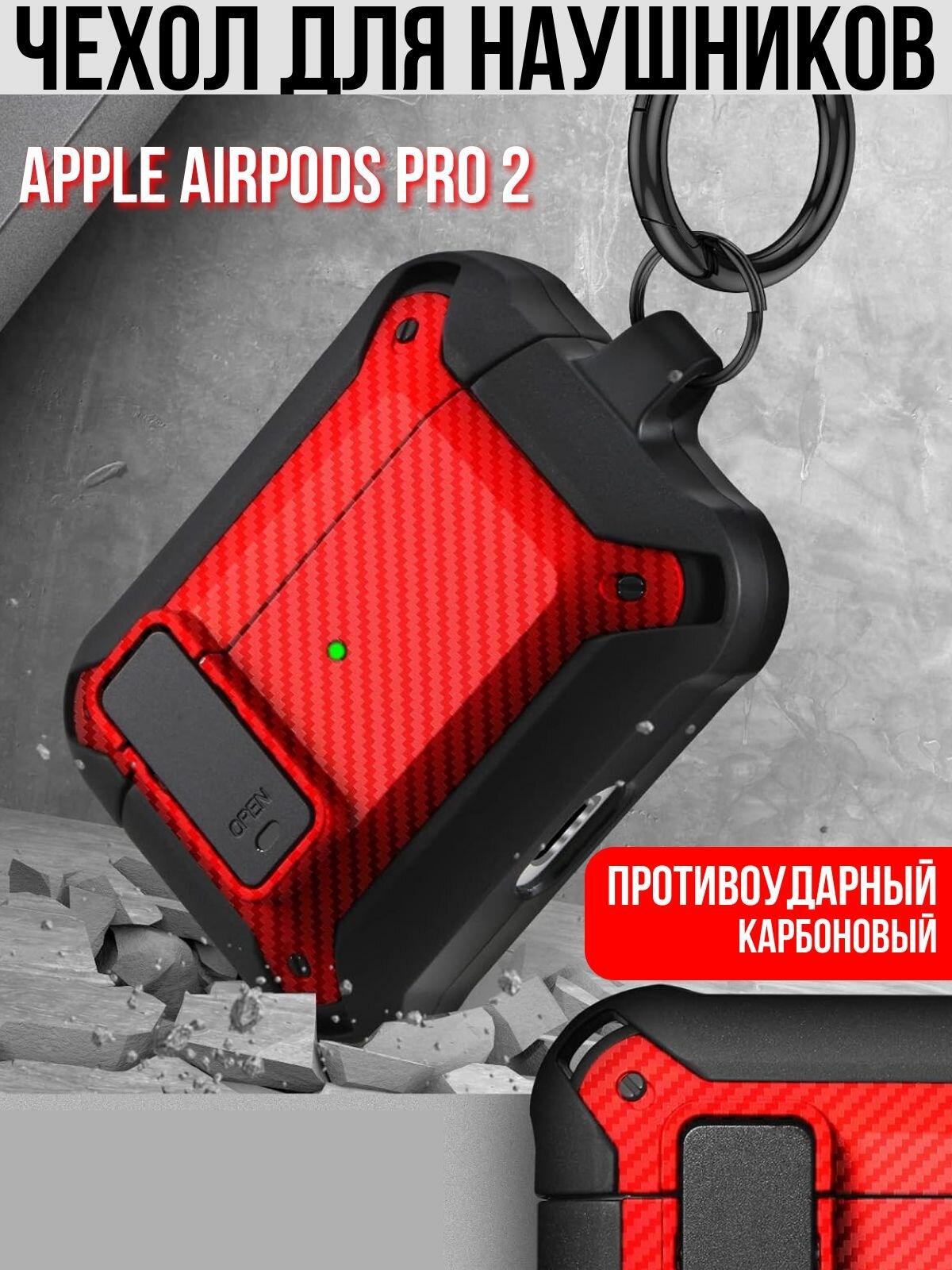 Чехол для наушников Airpods Pro и Airpods Pro 2 противоударный красный / Чехол для наушников аирподс про и аирподс про 2 усиленный карбон
