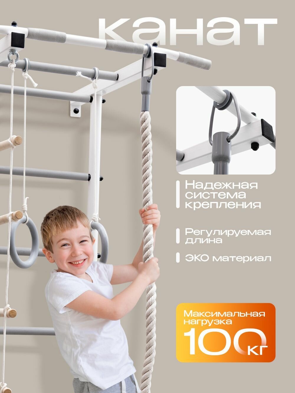 | Комплектация | веревочная лестница / гимнастические кольца / канат / лестница / турник |