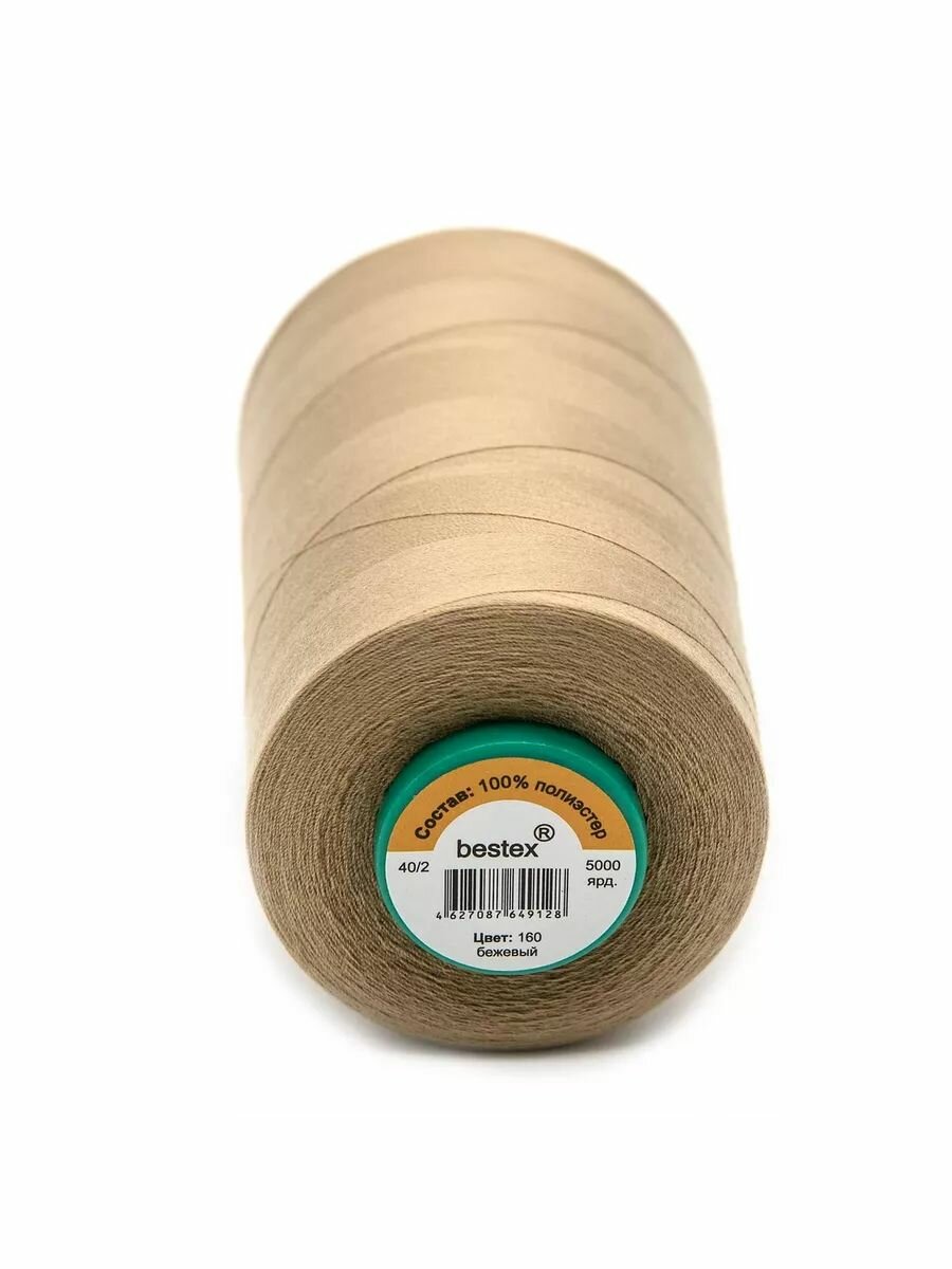Нитки промышленные Bestex 40/2, универсальные, 5000 ярдов (160 бежевый)