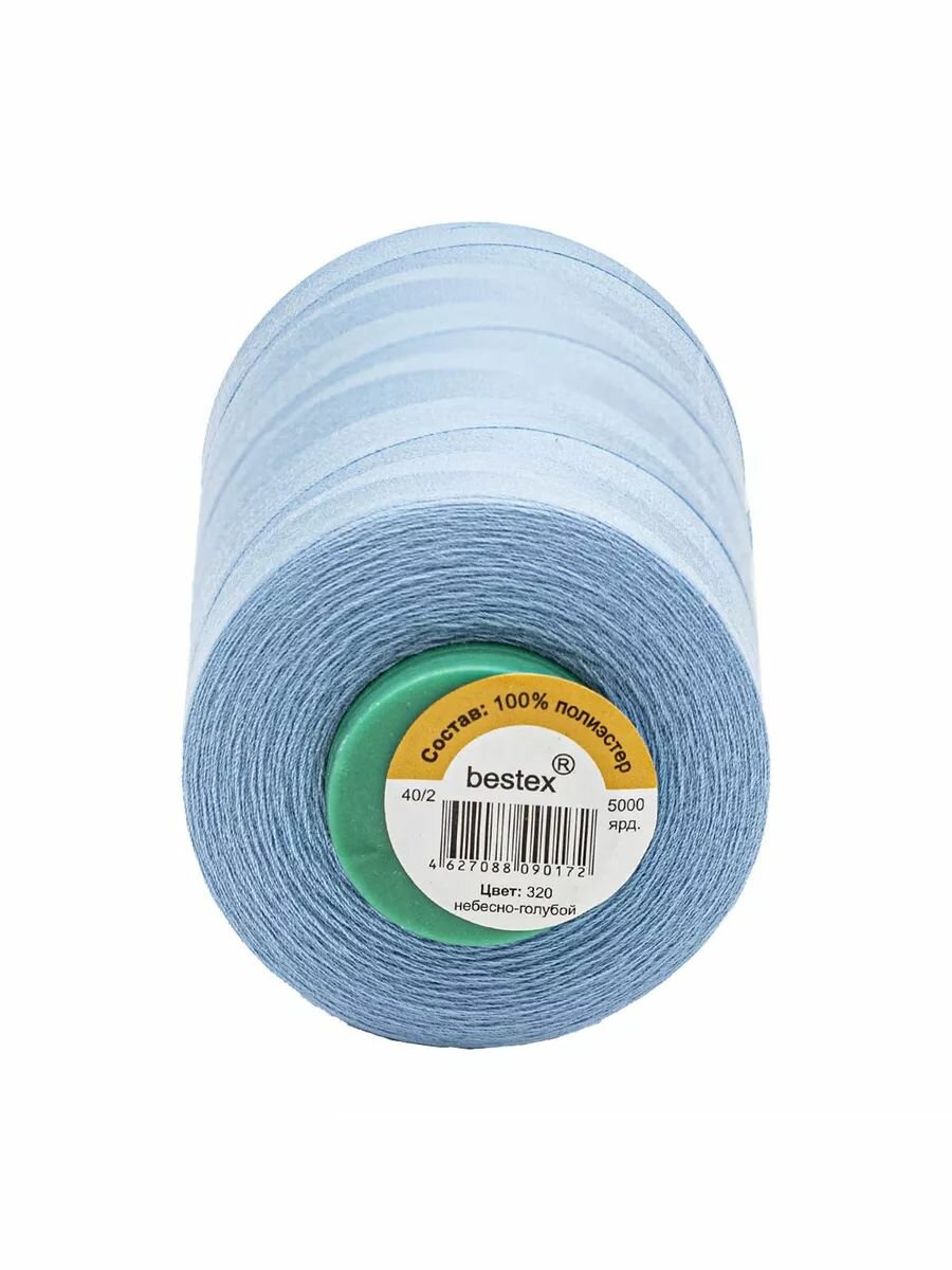 Нитки промышленные Bestex 40/2, универсальные, 5000 ярдов (320 небесно-голубой)