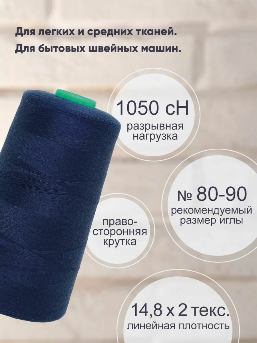 Нитки промышленные Bestex 40/2, универсальные, 5000 ярд (273 тёмный индиго)
