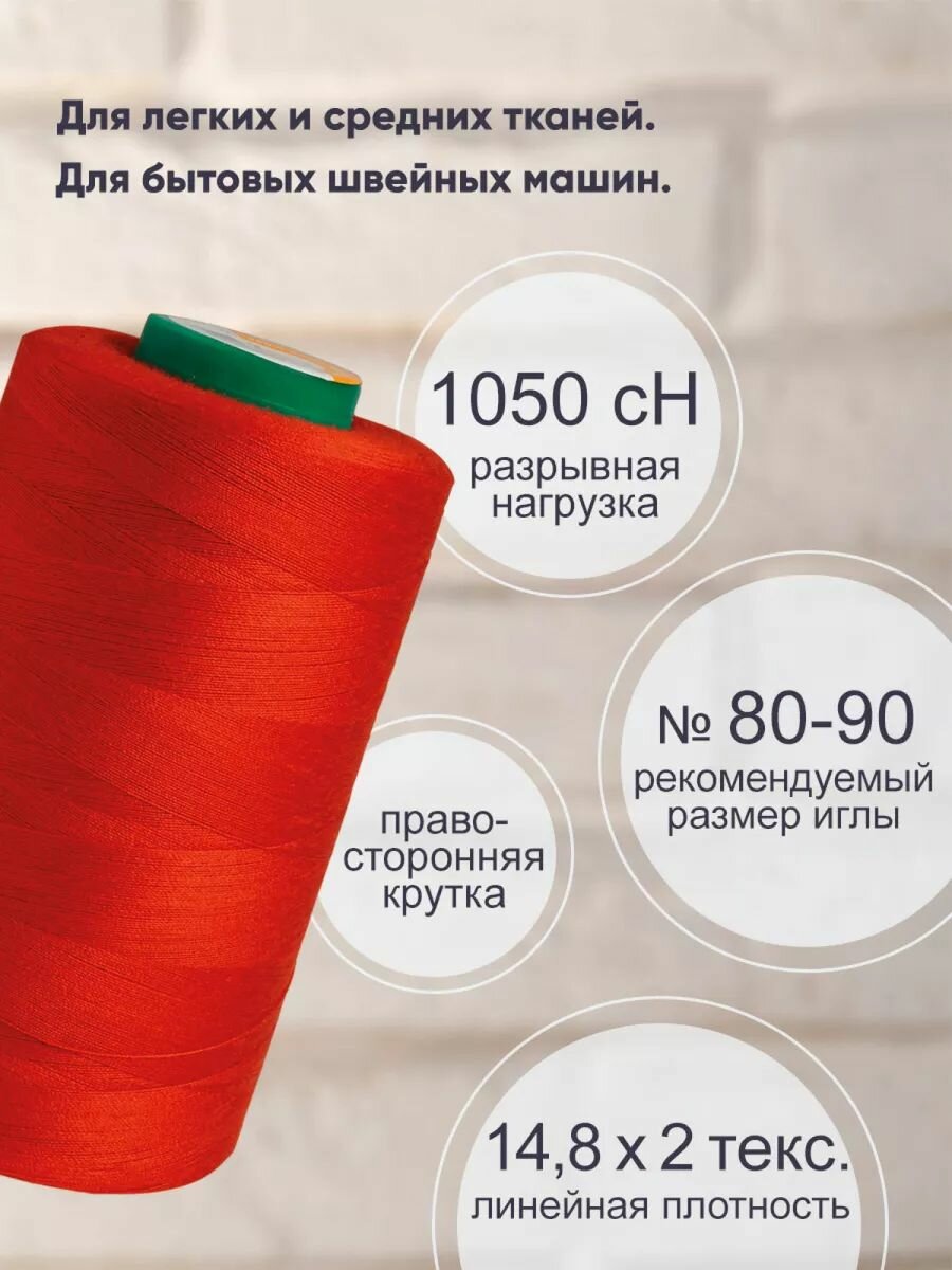 Нитки промышленные Bestex 40/2, универсальные, 5000 ярдов (049 яркий алый)