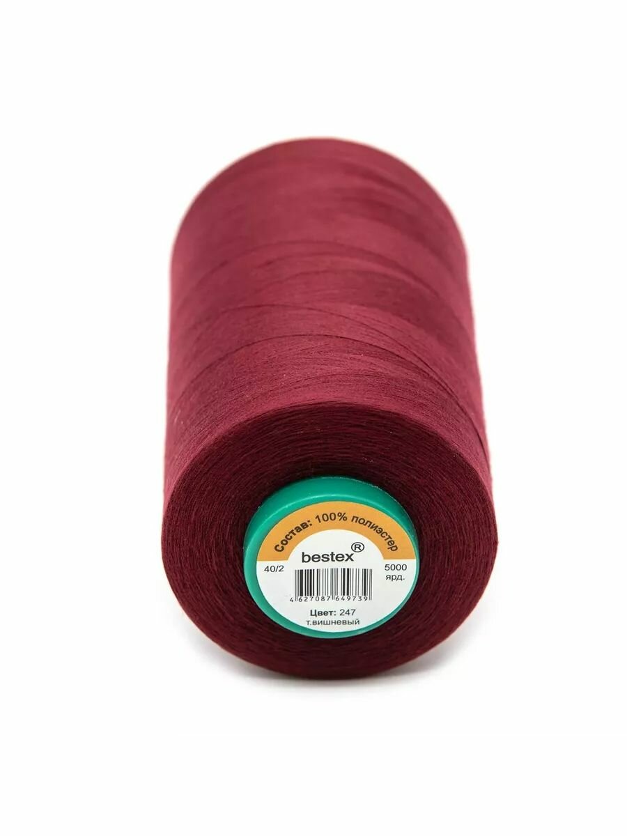 Нитки промышленные Bestex 40/2, универсальные, 5000 ярдов (247 тёмно-вишневый)