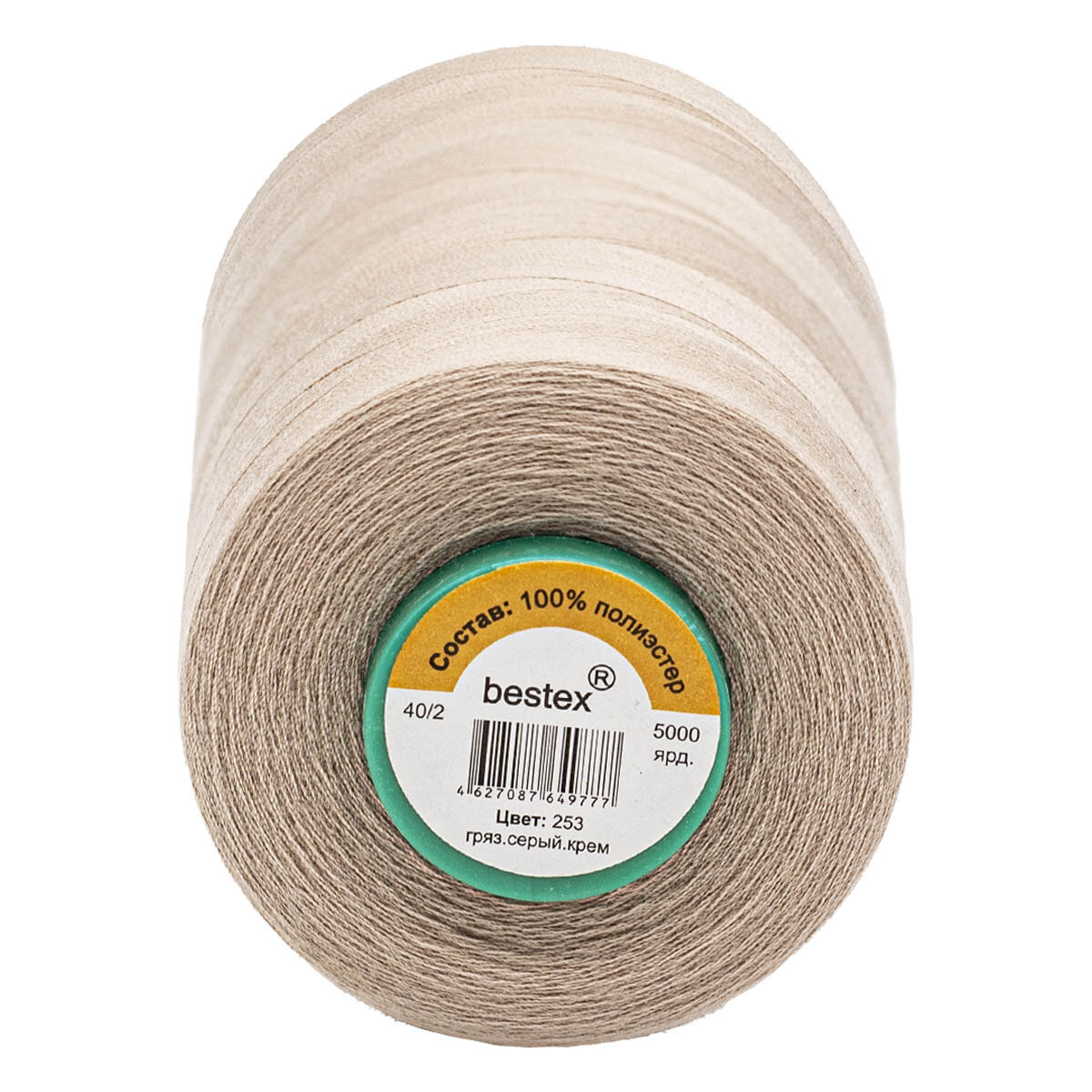 Купить Нитки швейные универсальные 40/2, 5000 ярд, промышленные, Bestex (253 грязно-серый крем)
