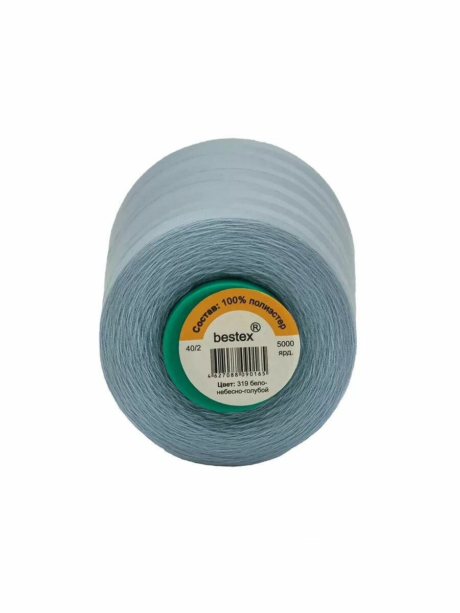 Нитки промышленные Bestex 40/2, универсальные, 5000 ярдов (319 бело-небесно-голубой)