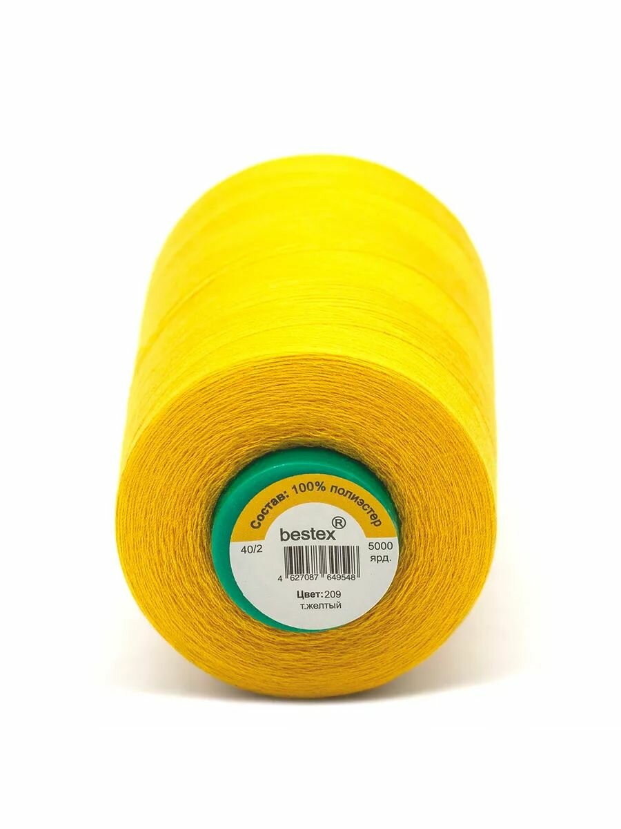 Купить Нитки швейные универсальные 40/2, 5000 ярд, промышленные, Bestex (209 тёмно-жёлтый)