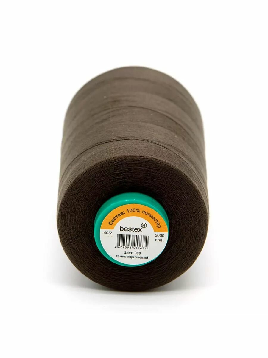 Купить Нитки швейные универсальные 40/2, 5000 ярд, промышленные, Bestex (386 тёмно-коричневый)