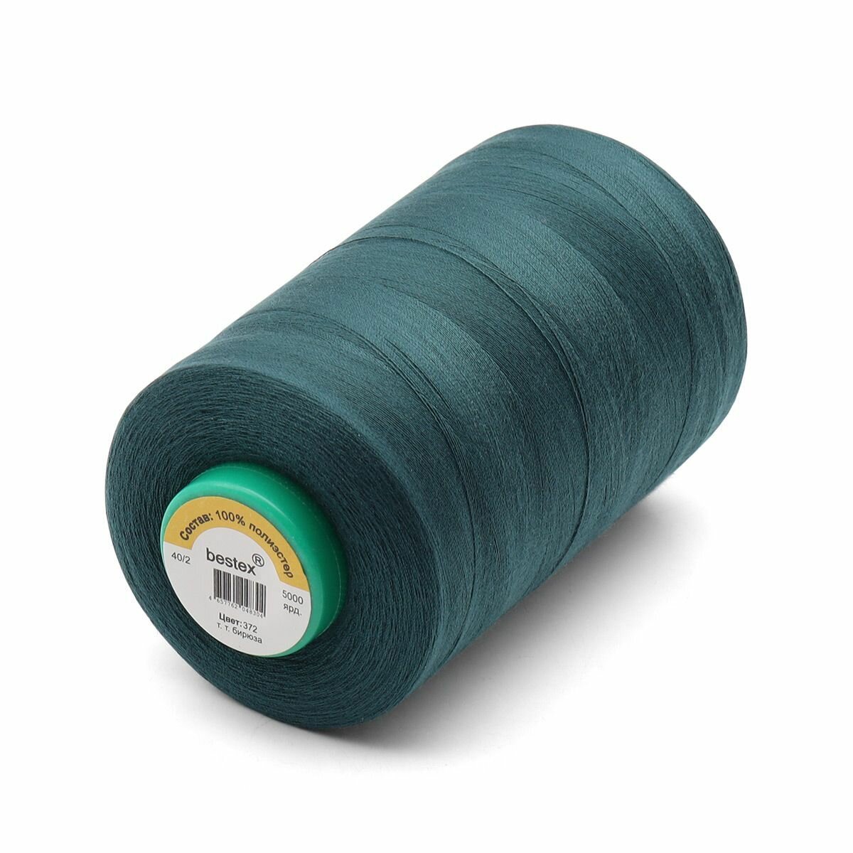 Нитки промышленные Bestex 40/2, универсальные, 5000 ярдов (372 тёмная бирюза)