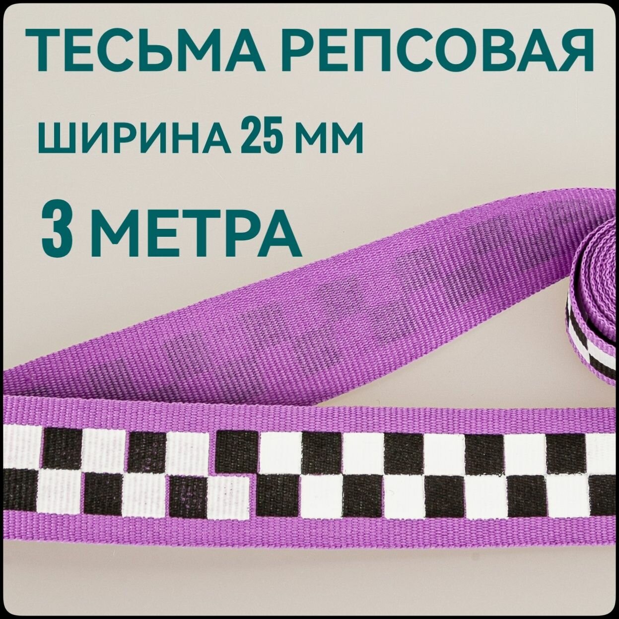 СохранитьЛента/ тесьма репсовая для шитья сиреневая с принтом шахматы ш.2.5 см, в уп.3 м, для шитья, творчества, рукоделия. интересное: