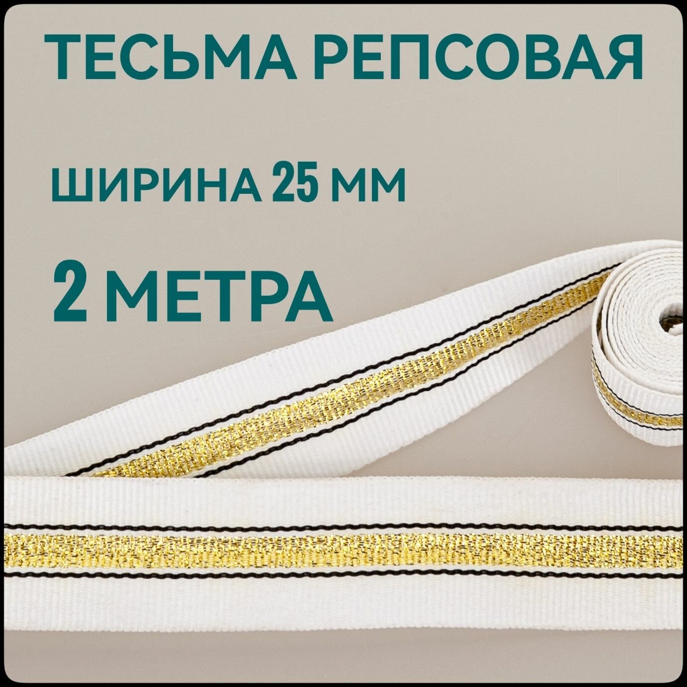 Купить Тесьма /лента репсовая для шитья с люрексом белая с золотом ш.25 мм, в упаковке 2 м, для шитья, творчества, рукоделия.