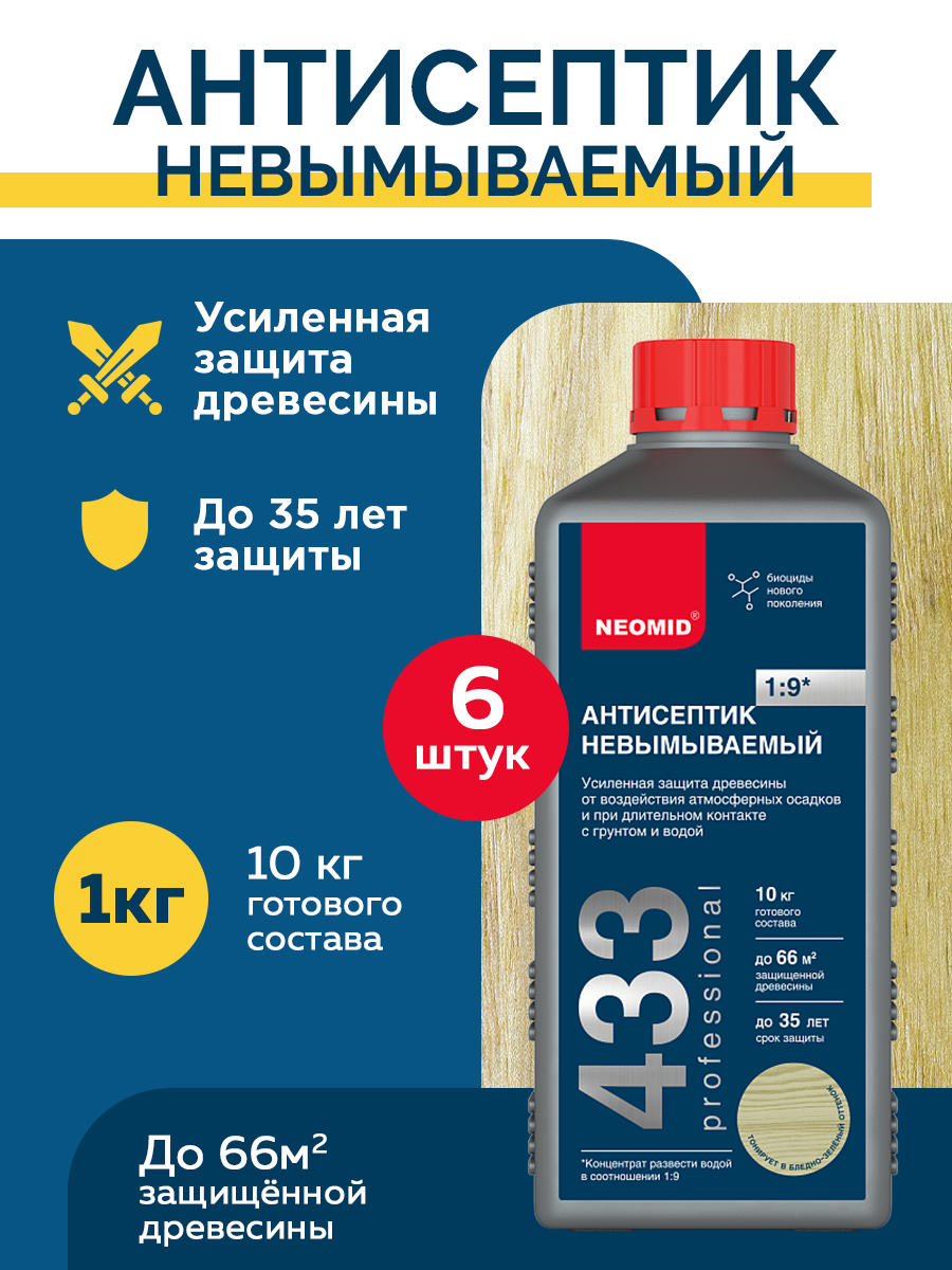 Neomid Антисептик невымываемый "Neomid 433 SuperEco" усиленный концентрат 1:9 6 штуки в комплекте по 1 кг