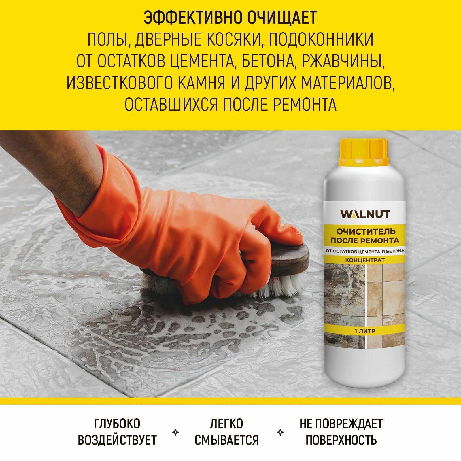 Очиститель после ремонта WALNAT, концентрат, от остатков цемента, бетона, 1 л интересное: