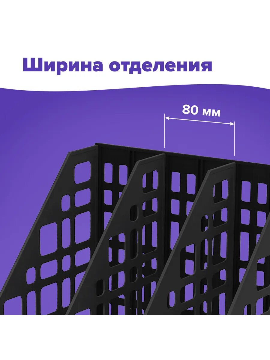 Лоток/подставка/органайзер вертикальный канцелярский сетчатый для документов/бумаг/файлов, 3 отделения, сборный, Brauberg "MAXI Plus" 240 мм, черный, 237013
