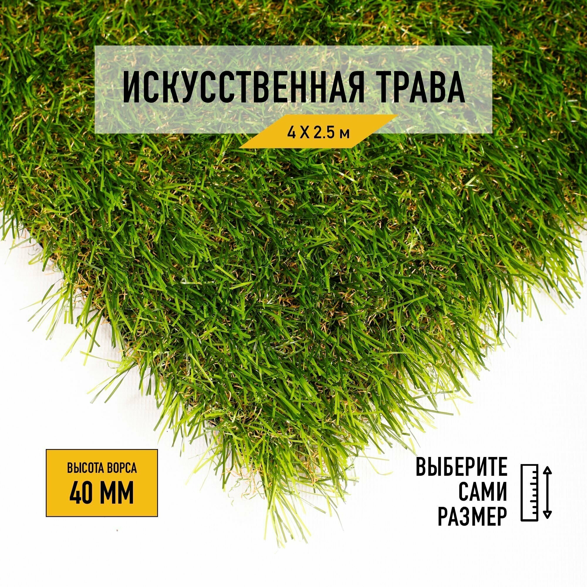 Рулон искусственного газона PREMIUM GRASS "Comfort 40 Green Bicolor" 4х2,5 м. Декоративная трава с высотой ворса 40 мм.
