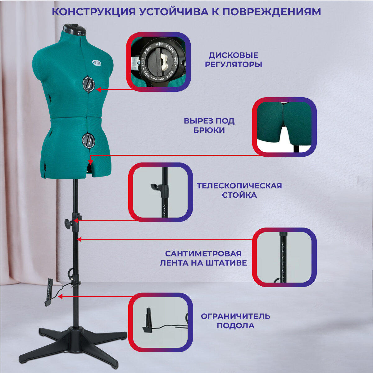 Портновский манекен SEVEN ZILVER «S», раздвижной, женский, зеленый, 42-52 размер интересное: