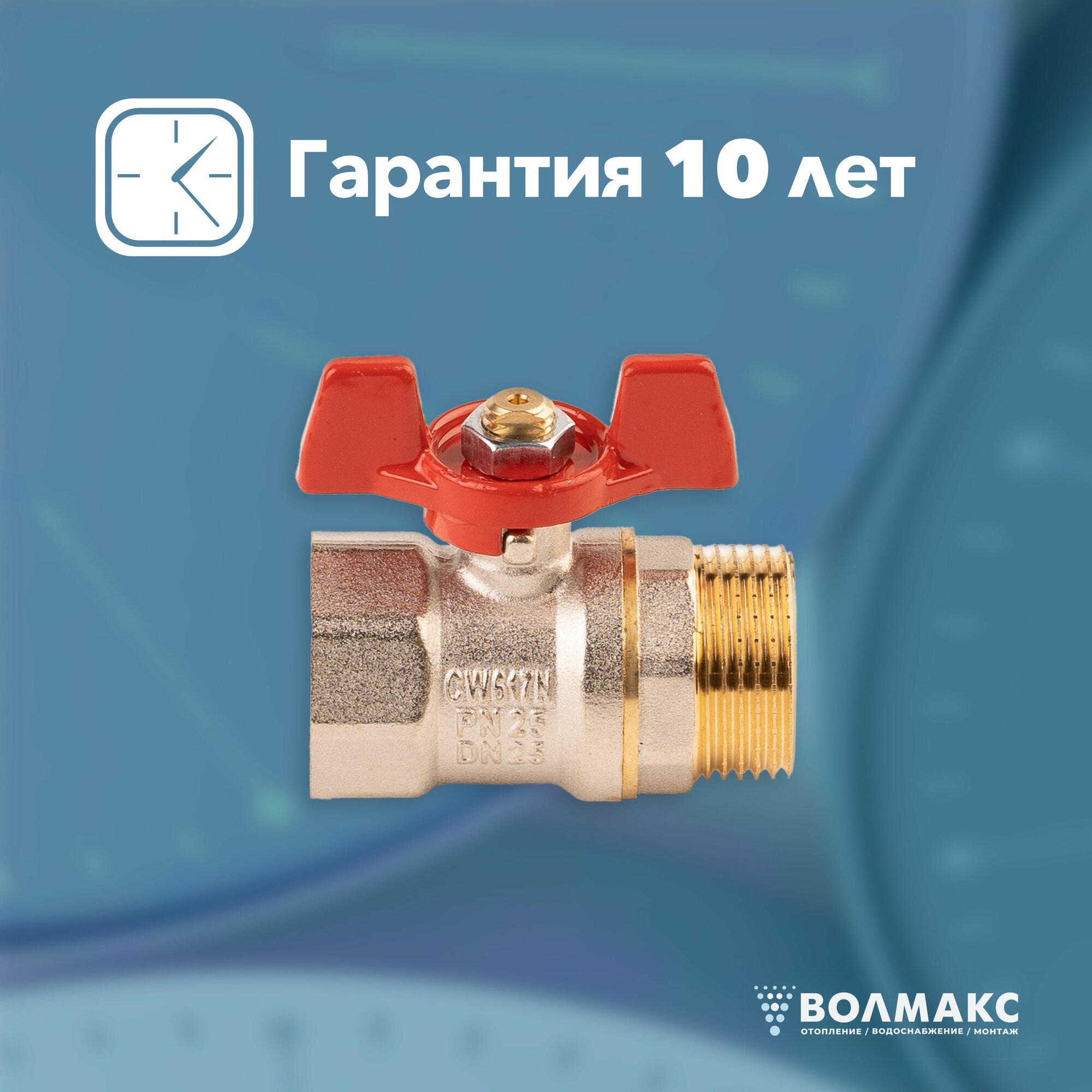 Шаровый кран 1 дюйм RTP шаровой латунный вн/нар PN 25 ручка бабочка