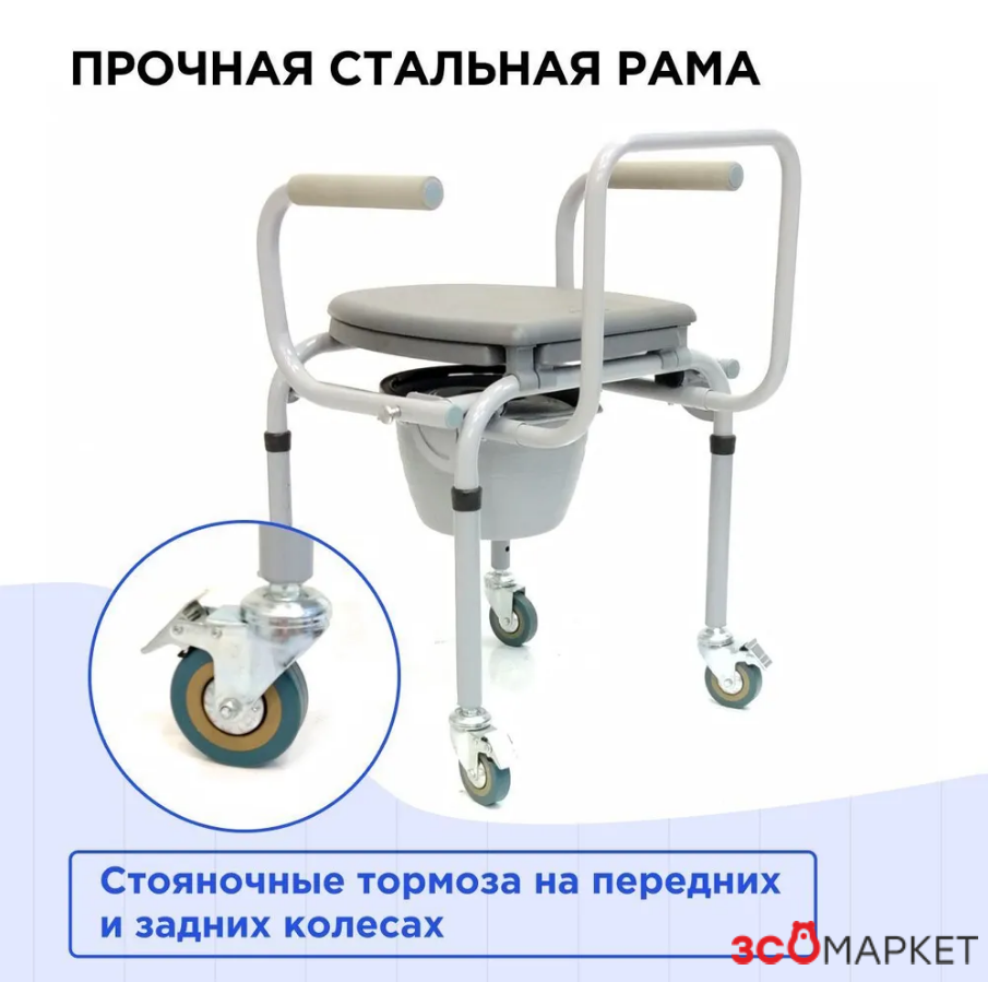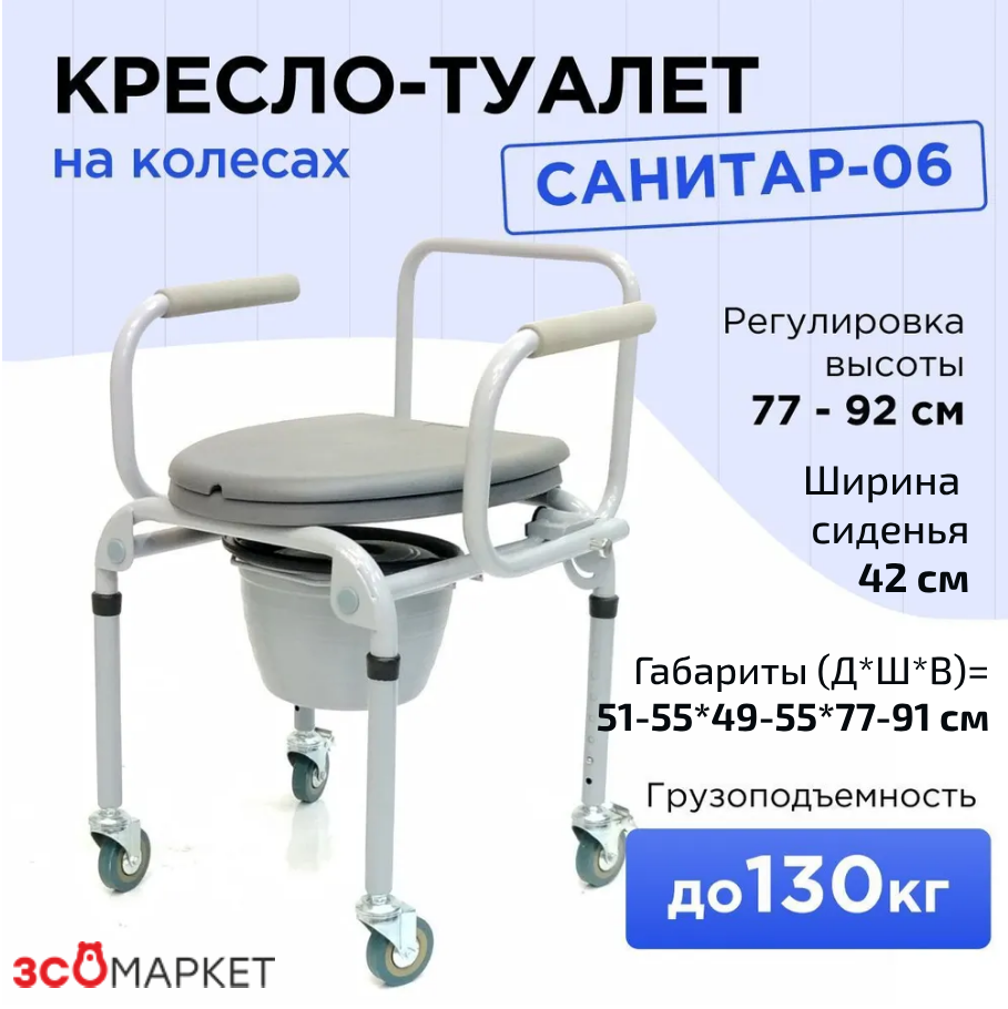 Кресло туалет САНИТАР-06 с регулировкой высоты инвалидный медицинский стул с санитарным оснащением пассивного типа интересное: