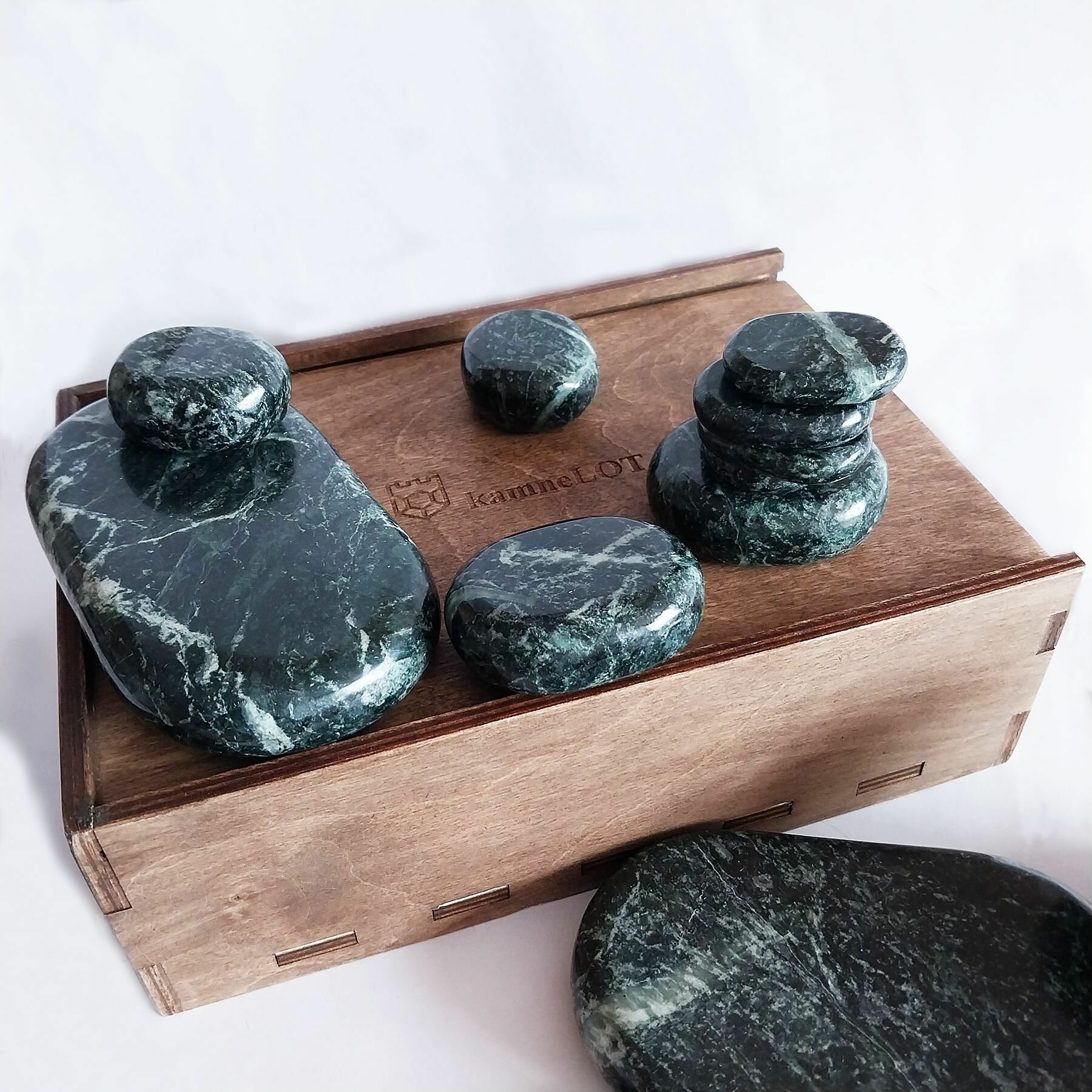 Купить Набор камней для стоунтерапии из 18 штук полированный змеевик