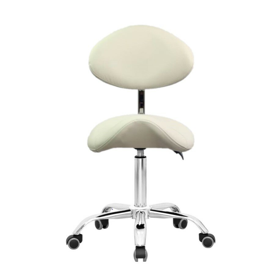 OKIRO / Стул-седло ортопедический на колесах со спинкой HY 7021 молочный / стул для парикмахера, косметолога