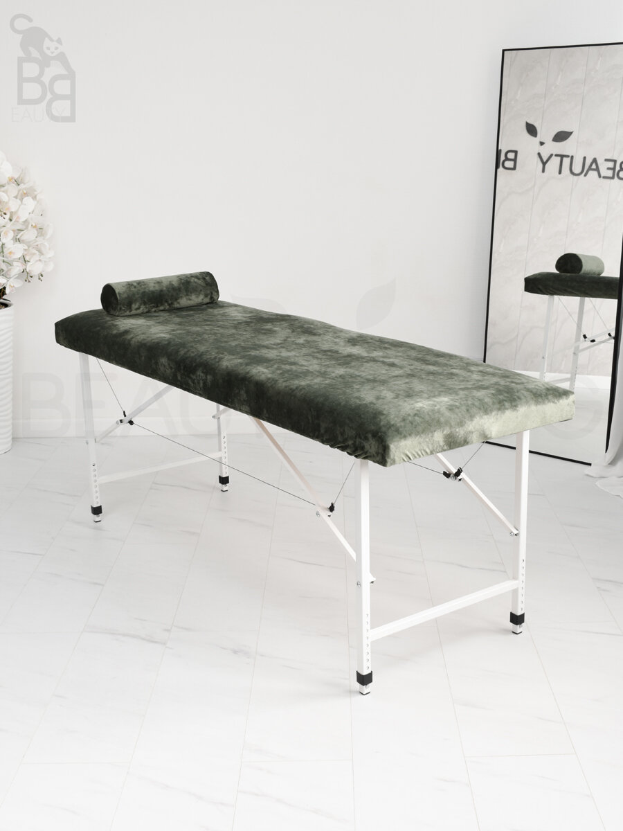 Купить Чехол для кушетки и массажного стола, велюр, 180x60 см, оливковый