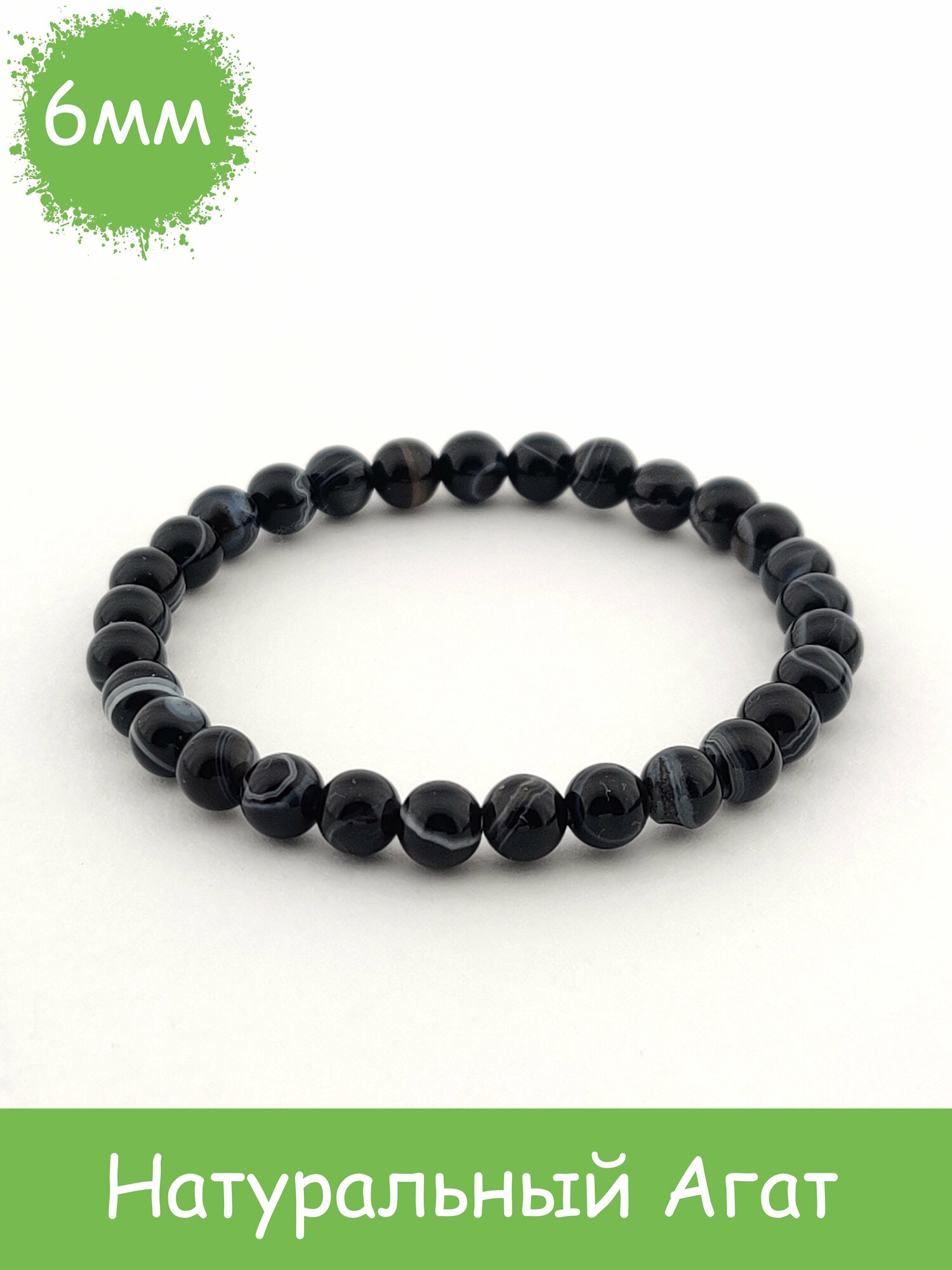 Браслет из натурального камня Агат (черный с прожилками), 6мм