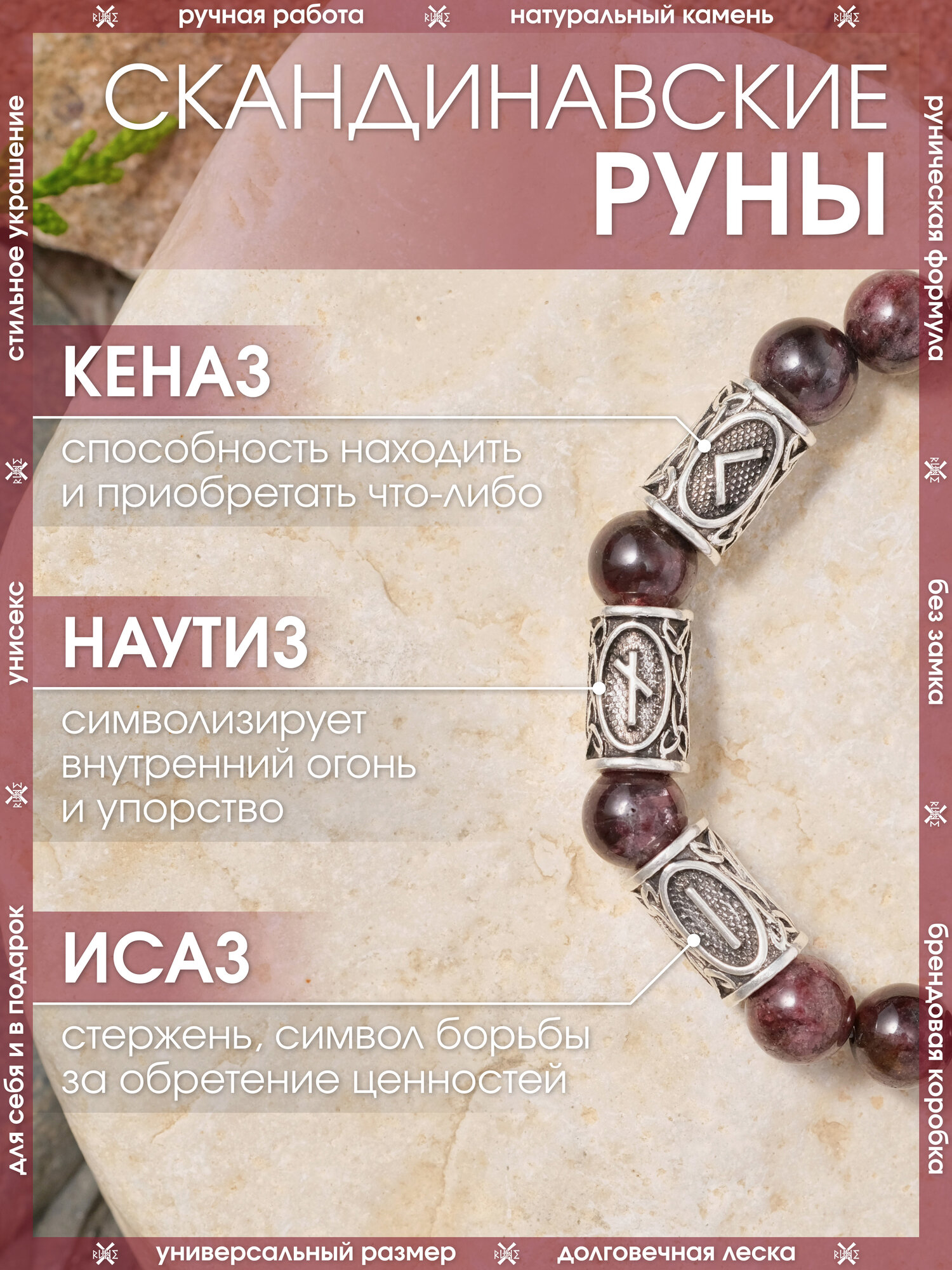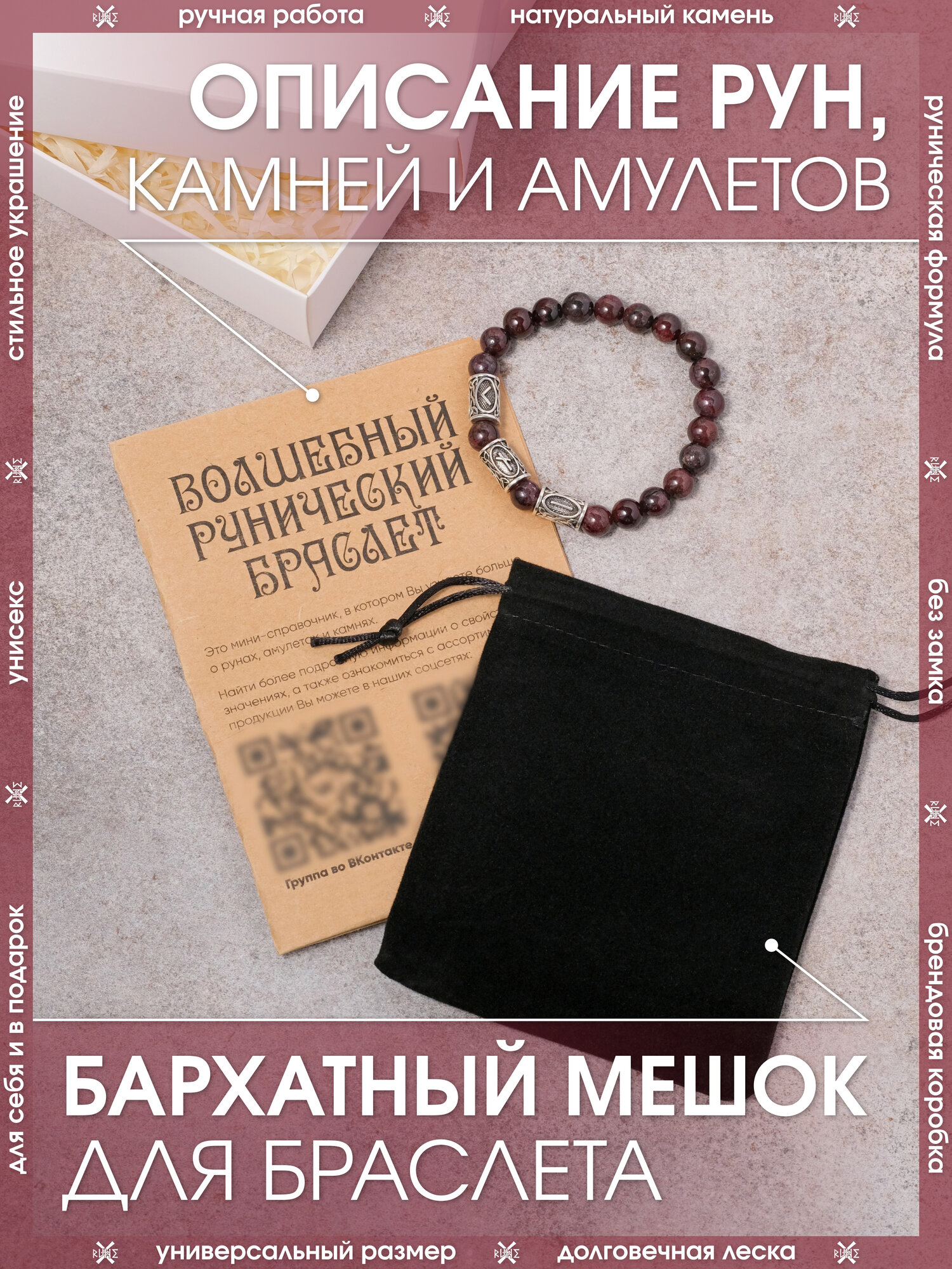 Браслет из натурального камня Граната/Талисман с рунами из металла/Браслет из бусин, бижутерия, украшение