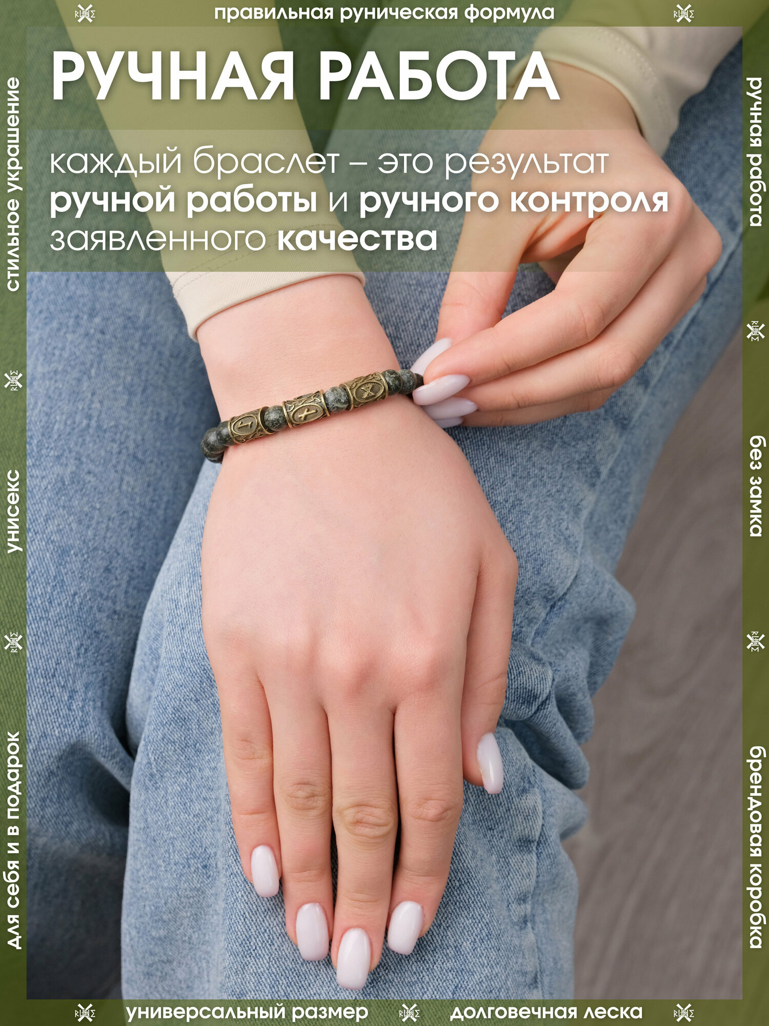 Браслет-оберег из камня Цоизит/Руническая формула гармонии/Браслет-талисман из бусин с рунами, бижутерия, украшение