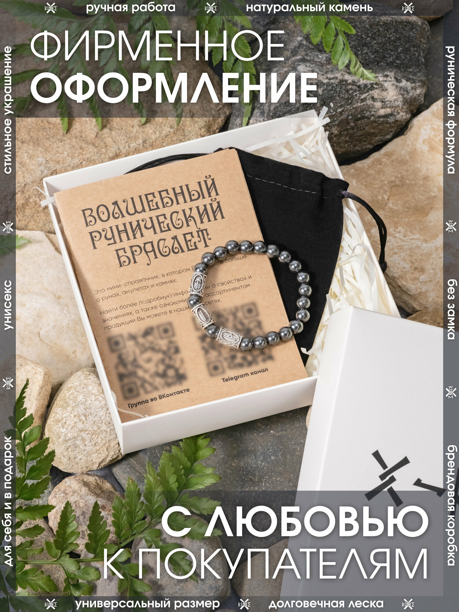 Браслет из немагнитного Гематита/Руническая формула стойкости и железной воли/Металлический браслет-оберег, бижутерия