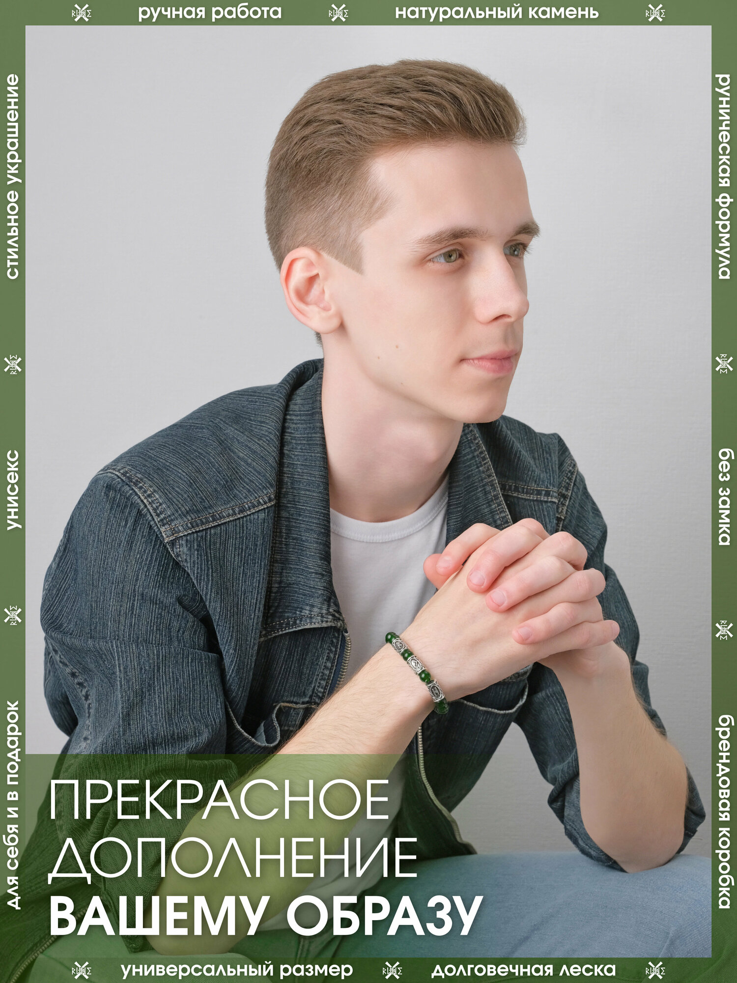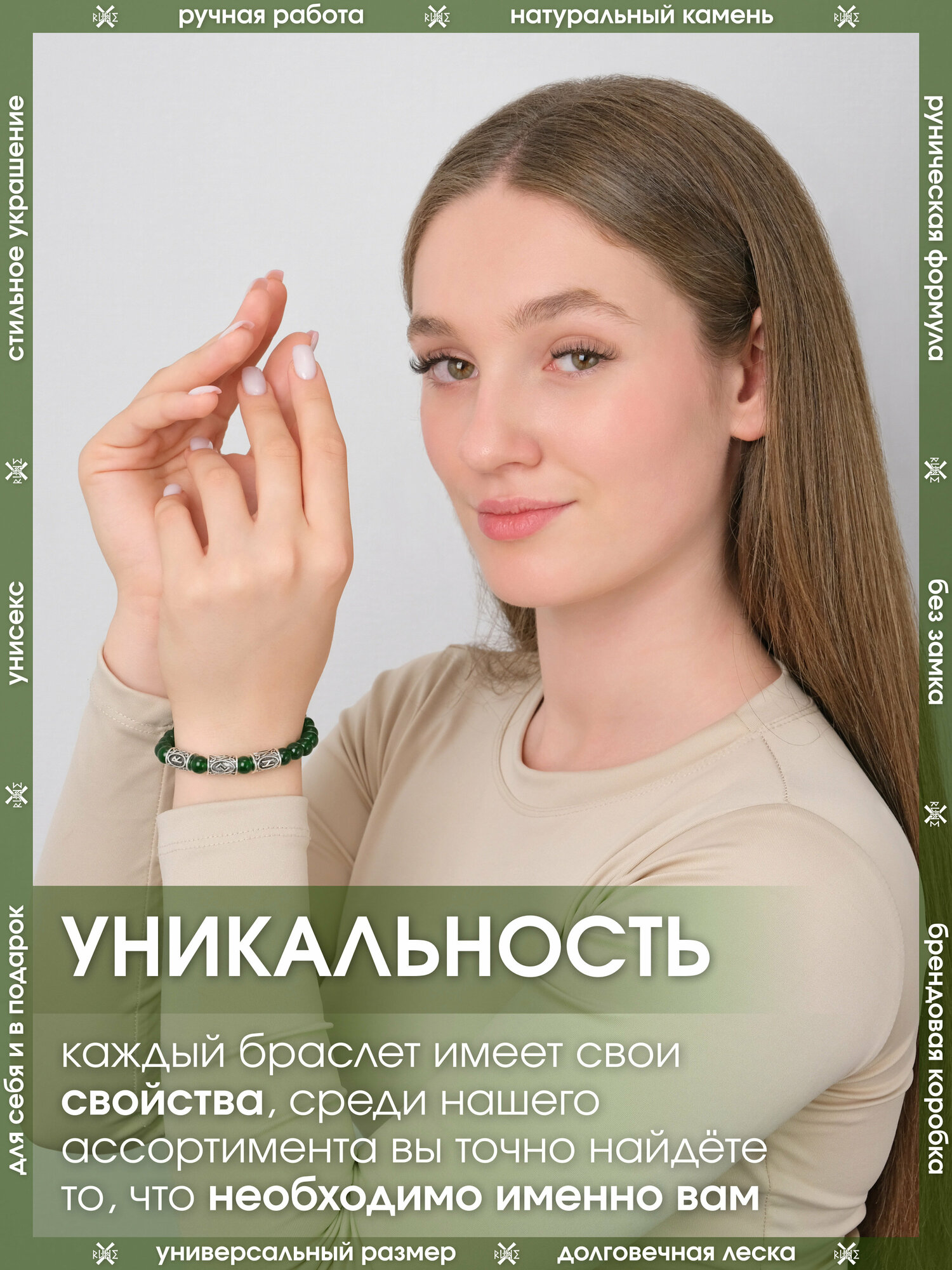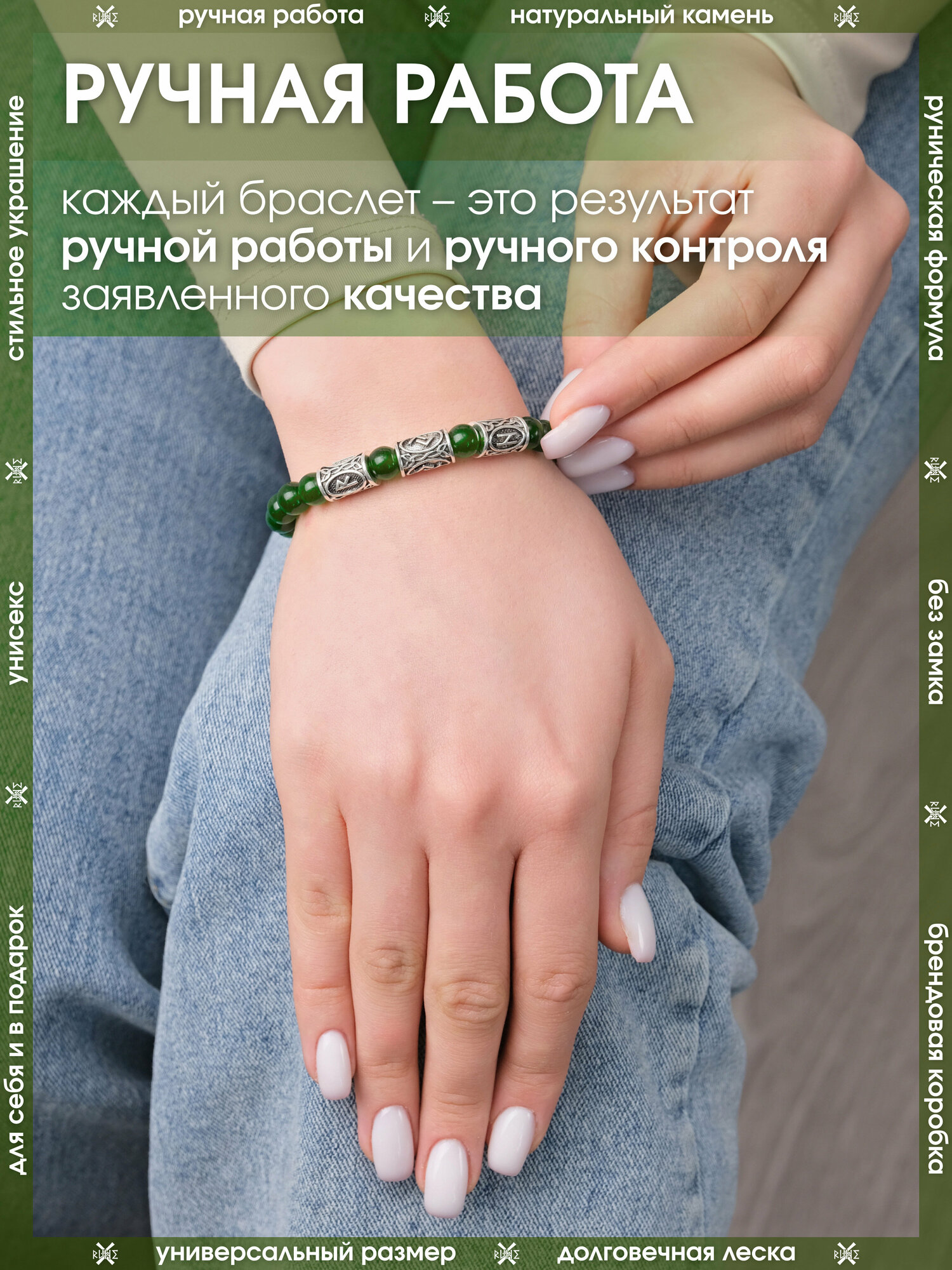 Браслет-оберег из камня Цоизит/Руническая формула гармонии/Браслет-талисман из бусин с рунами, бижутерия, украшение