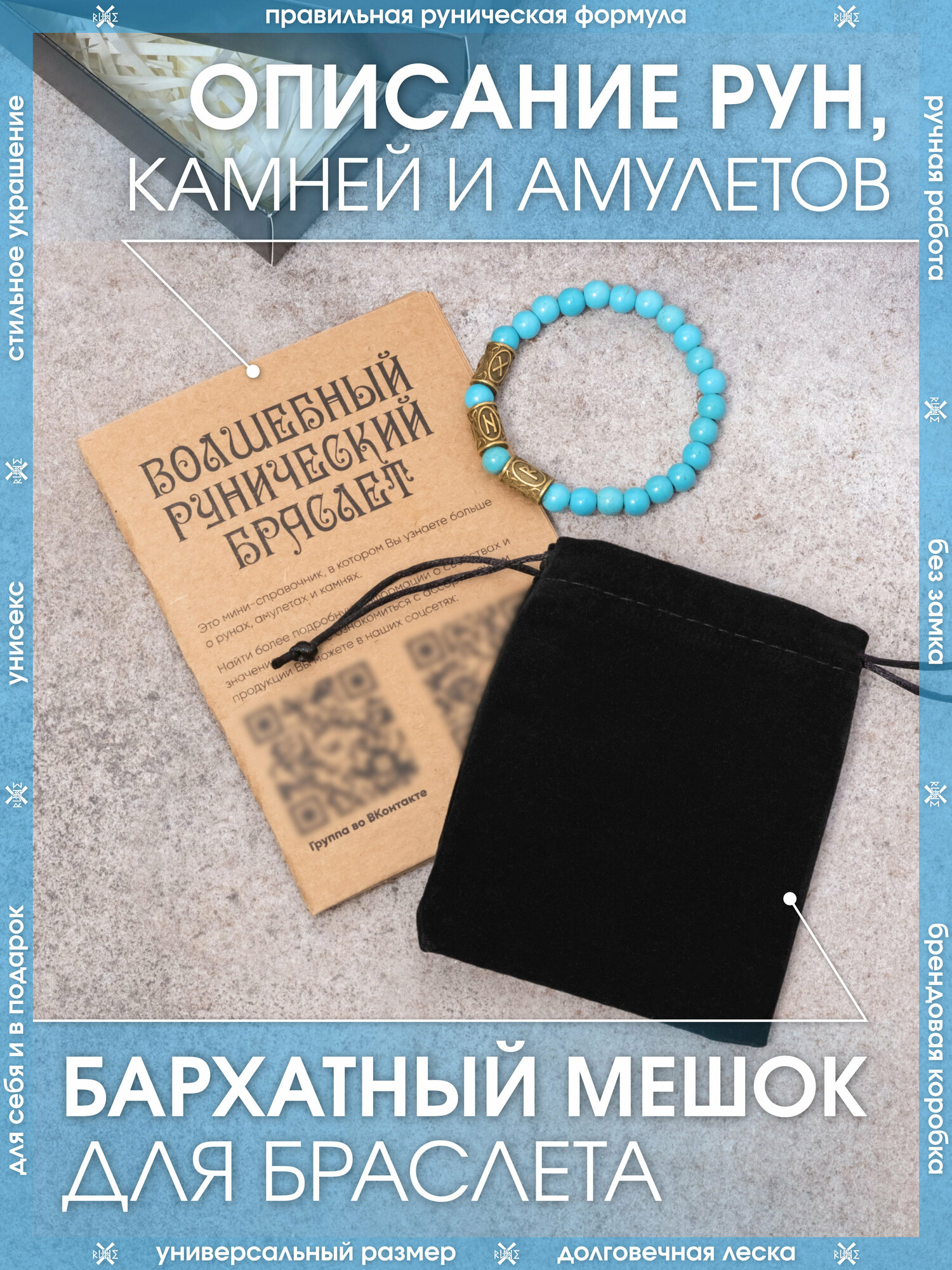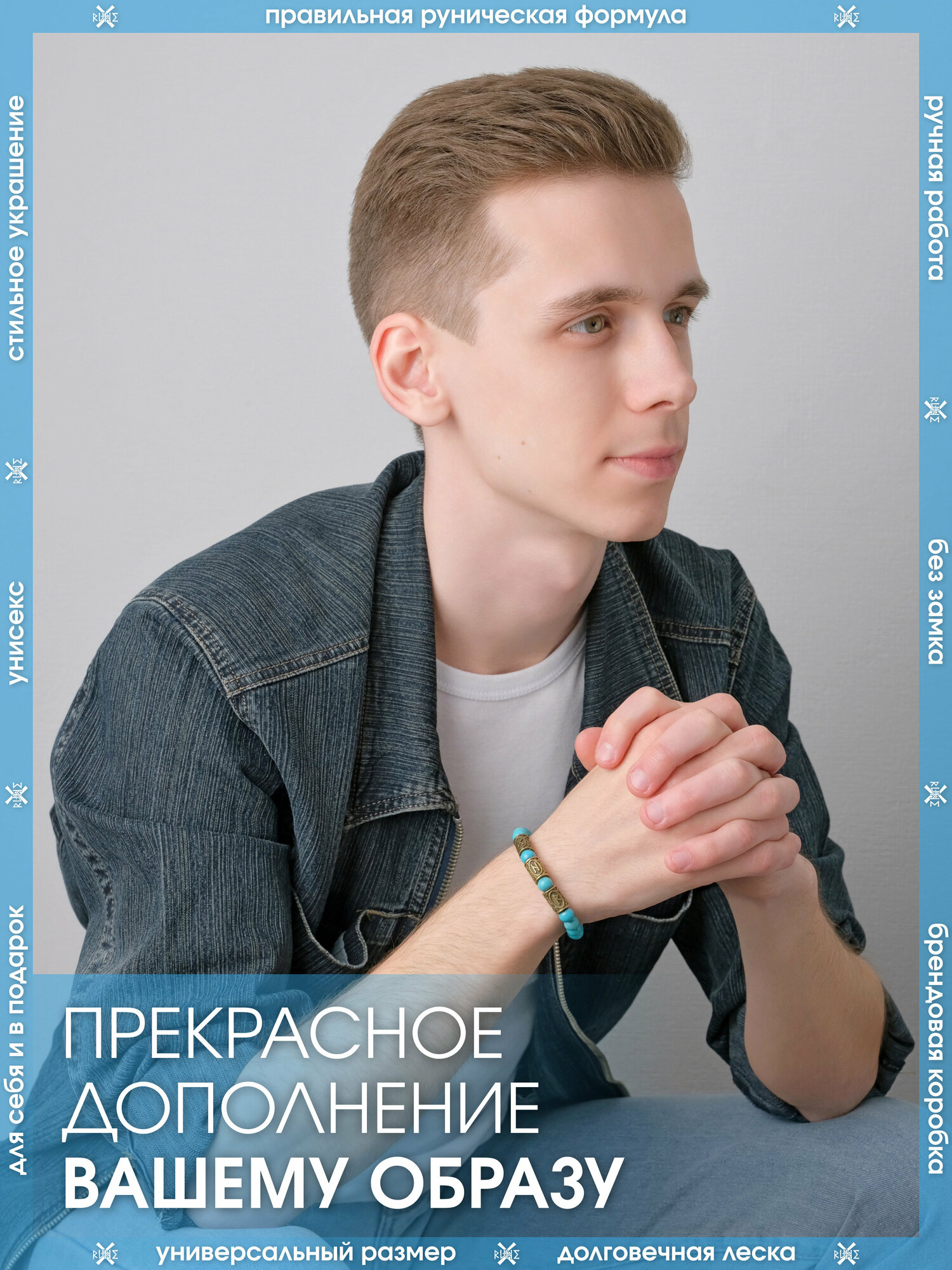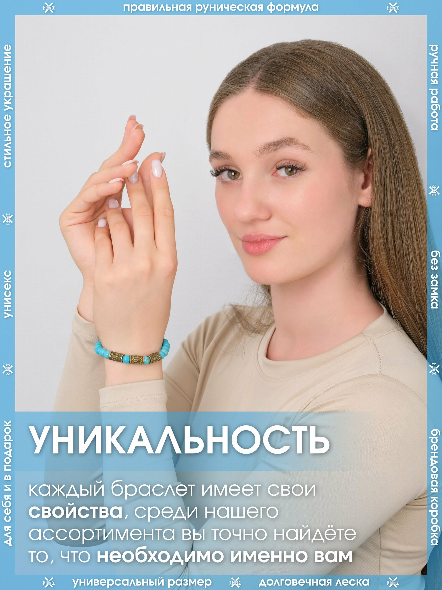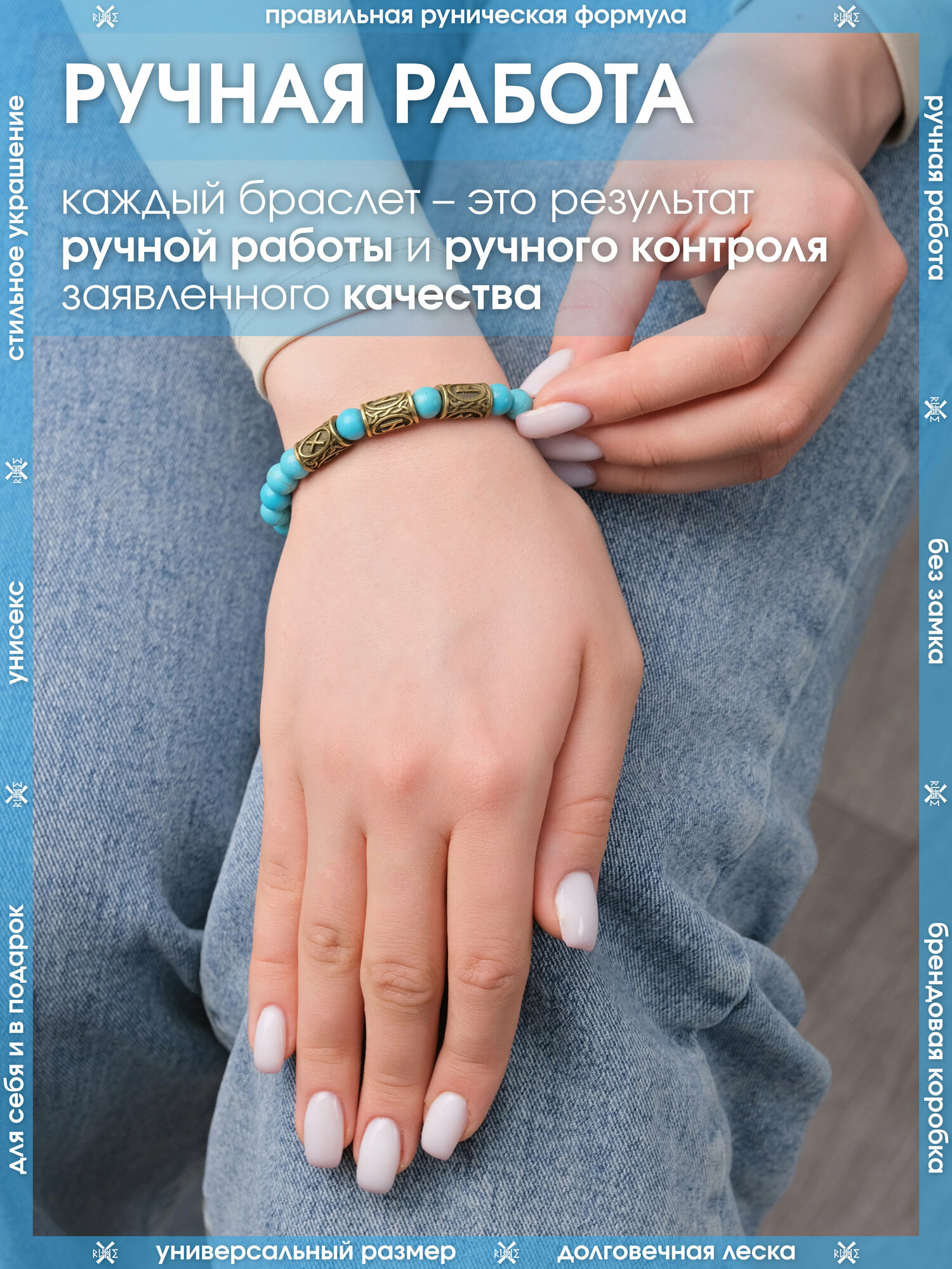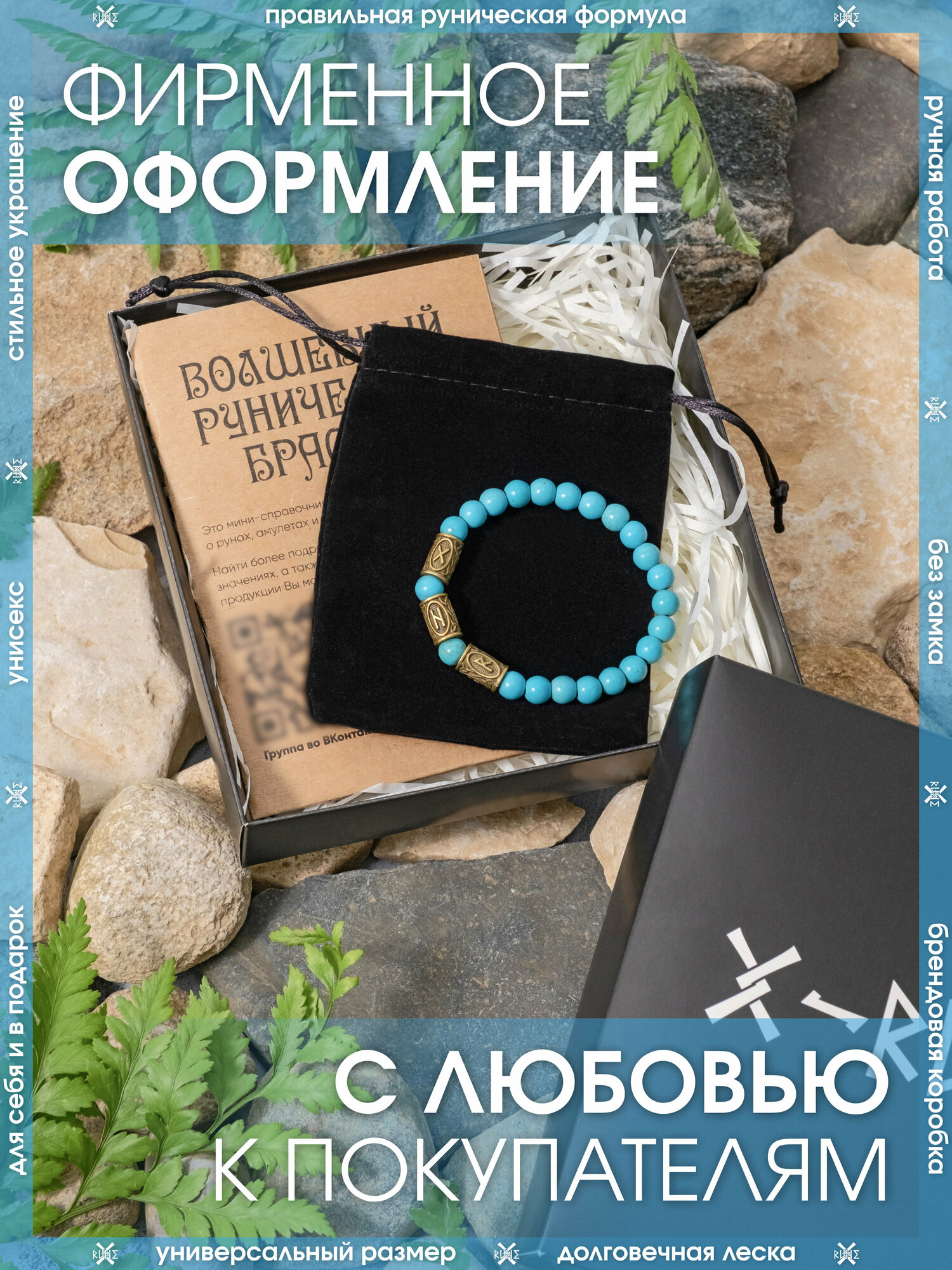 Браслет-оберег из камня Бирюза/Руническая формула проницательности, талисман с рунами из латуни/Бирюзовый браслет из бусин, бижутерия, украшение