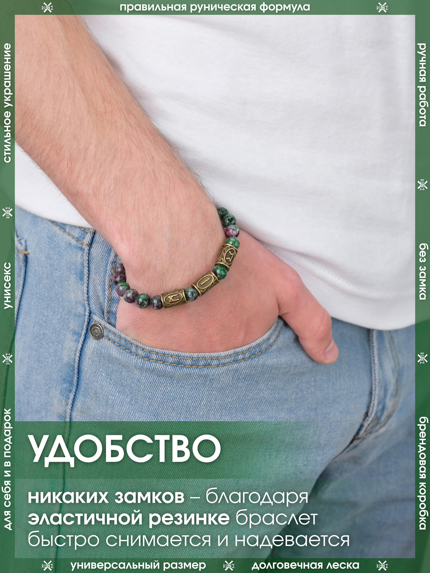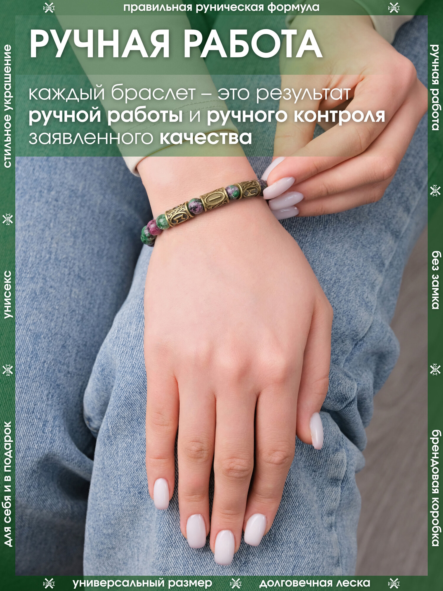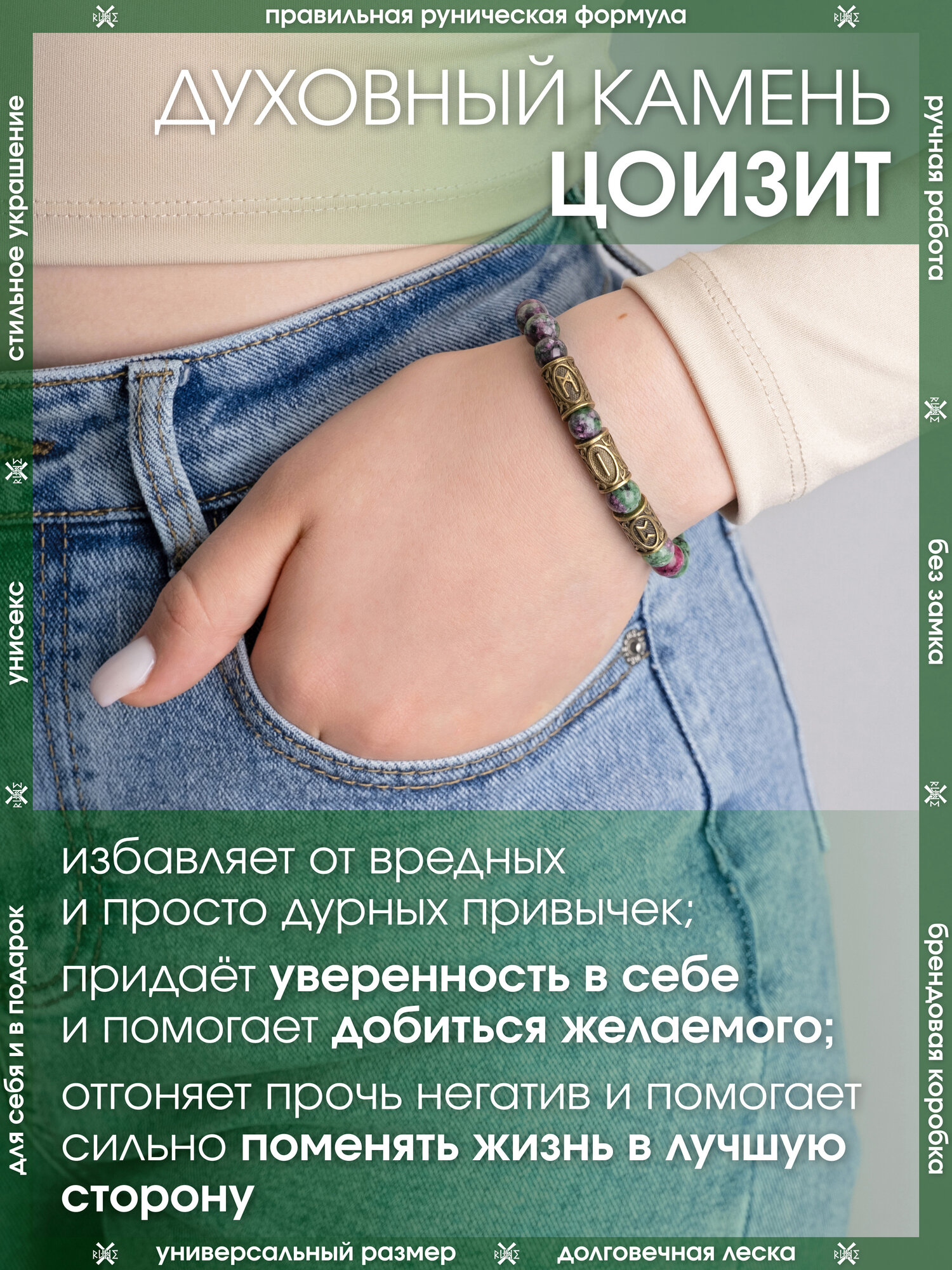 Браслет-оберег из камня Цоизит/Руническая формула гармонии/Браслет-талисман из бусин с рунами, бижутерия, украшение