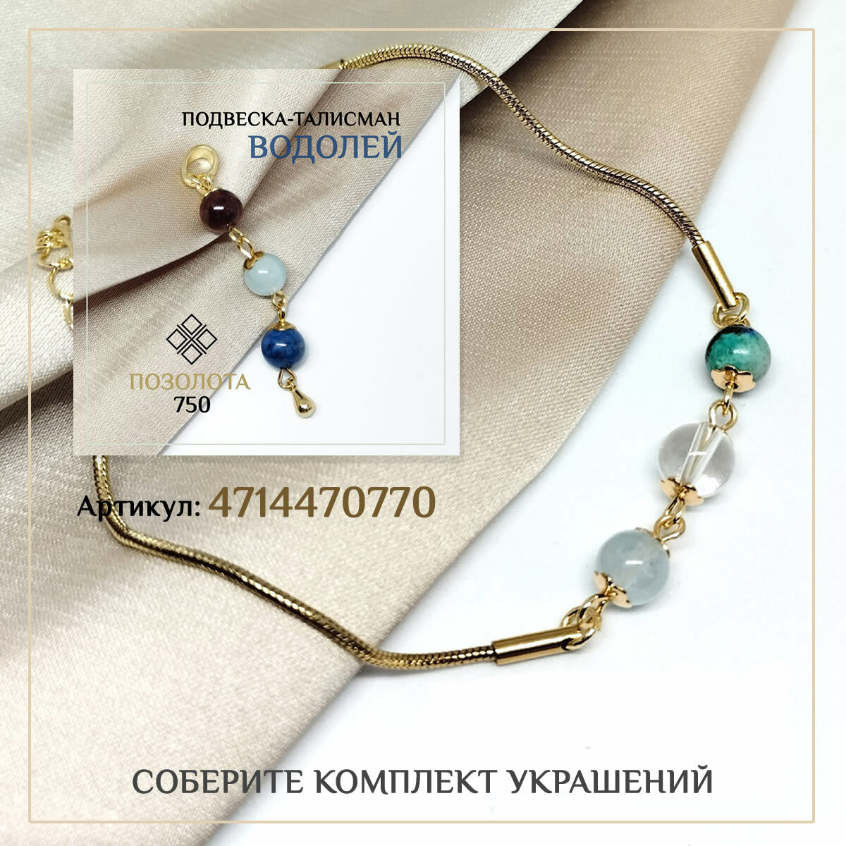 Браслет талисман для Водолея. Позолота, натуральные камни: Аквамарин, Горный хрусталь, Азурмалахит