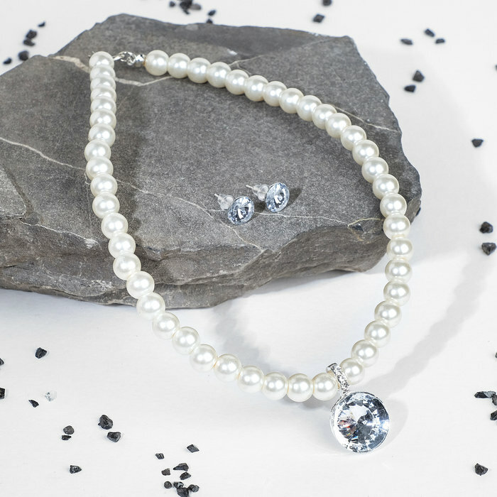 Купить Комплект бижутерии Queen Fair: подвеска, серьги, размер колье/цепочки 40 см, белый