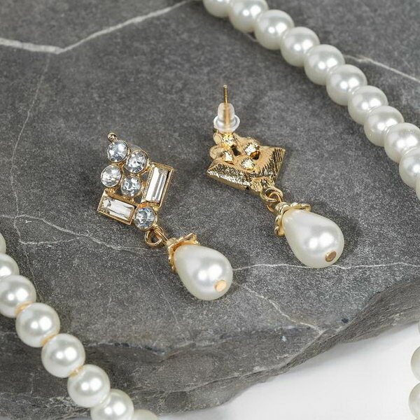Комплект бижутерии Queen Fair: подвеска, серьги, размер колье/цепочки 40 см, белый