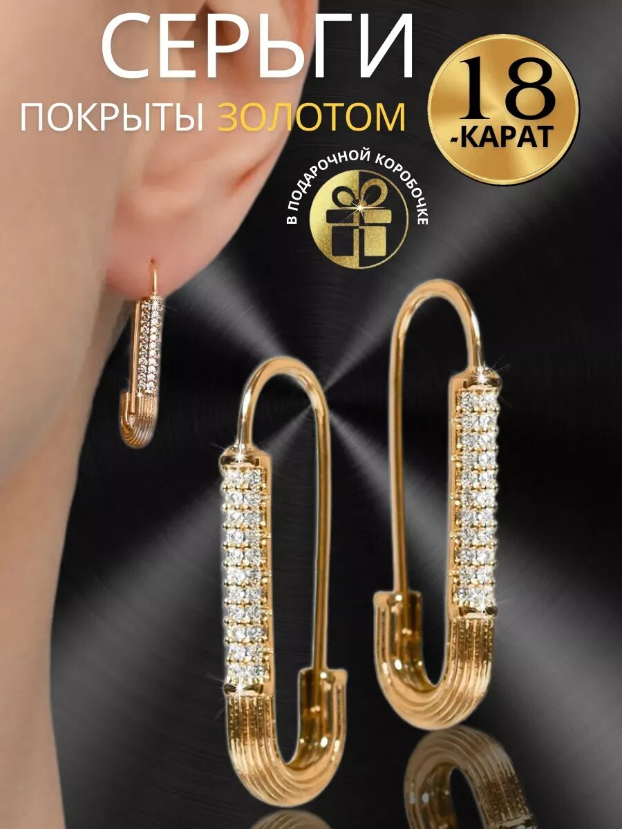 Серьги бижутерия длинные булавки, как серьги золотые 585, сережки булавочки позолоченные с камнями из медицинского сплава, ювелирный, родирование