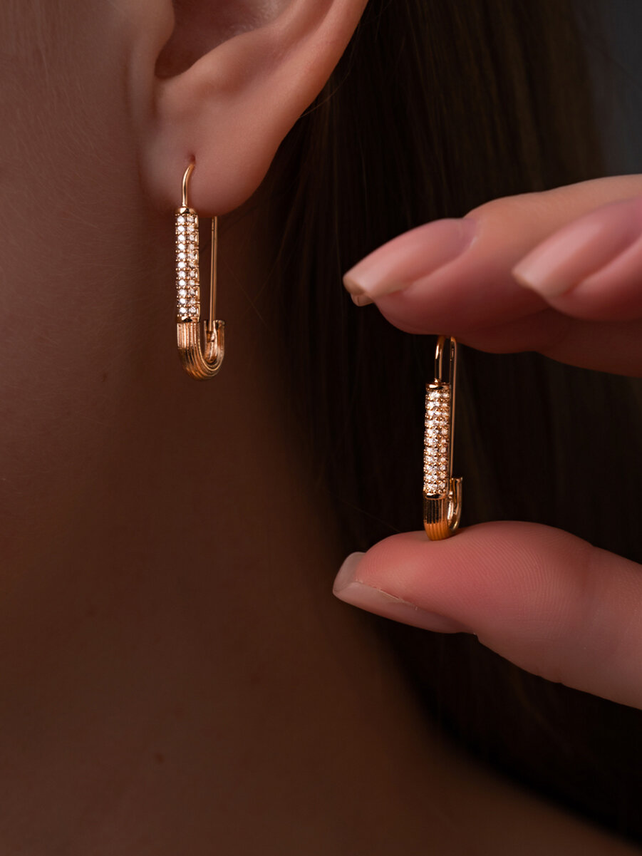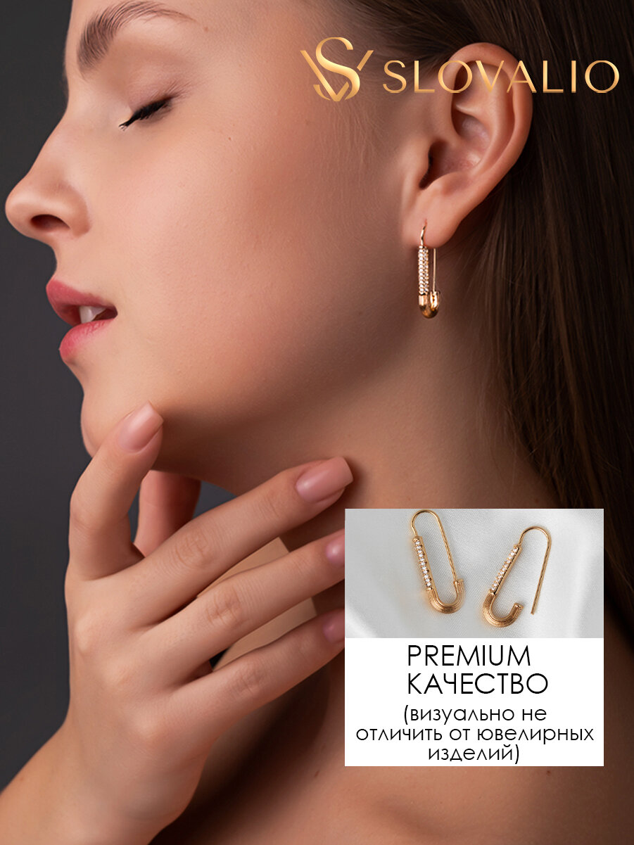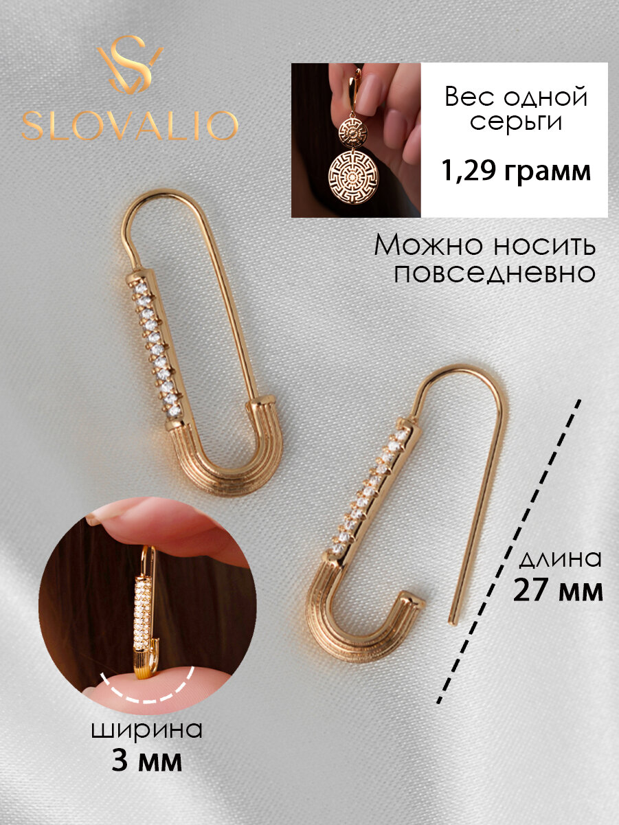 Серьги бижутерия длинные булавки, как серьги серебро, сережки булавочки позолоченные с камнями из медицинского сплава, ювелирный, родирование SLOVALIO