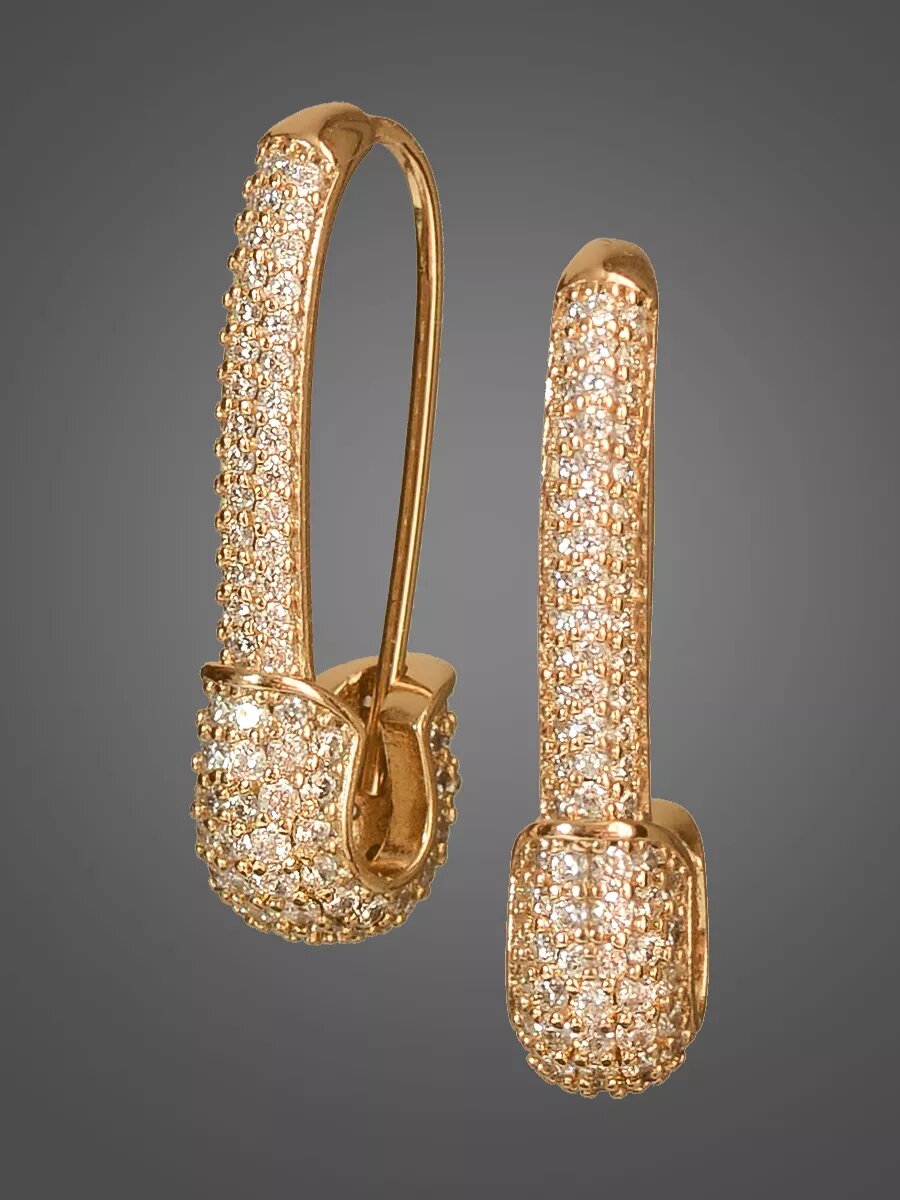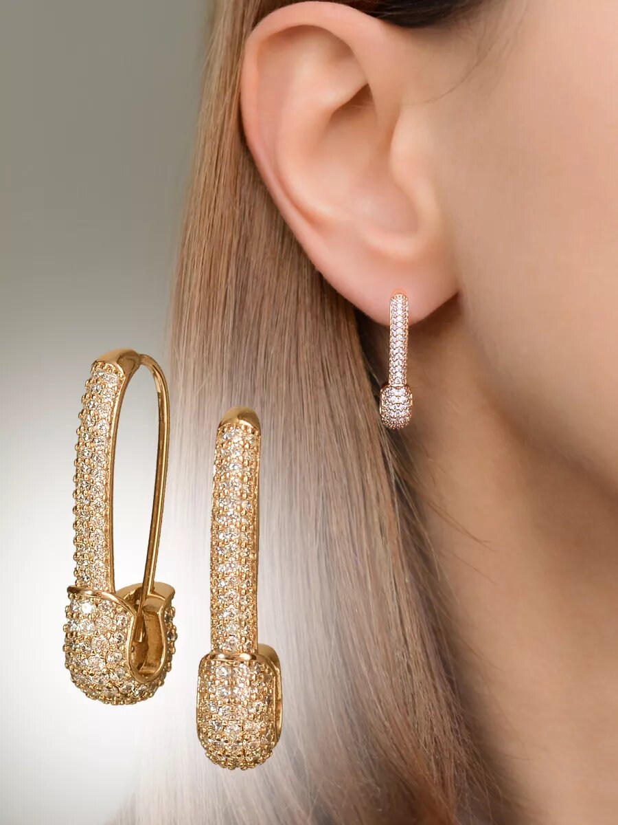 Серьги бижутерия длинные булавки, как серьги серебро, сережки булавочки позолоченные с камнями из медицинского сплава, ювелирный, родирование SLOVALIO