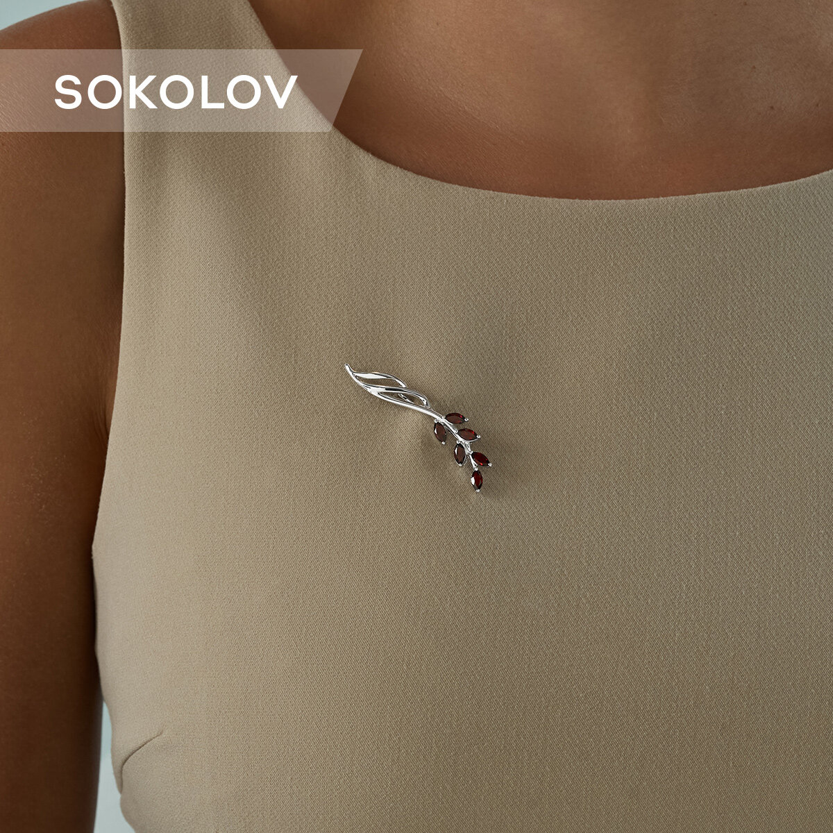 Купить Брошь SOKOLOV, серебро, 925 проба, родирование, гранат
