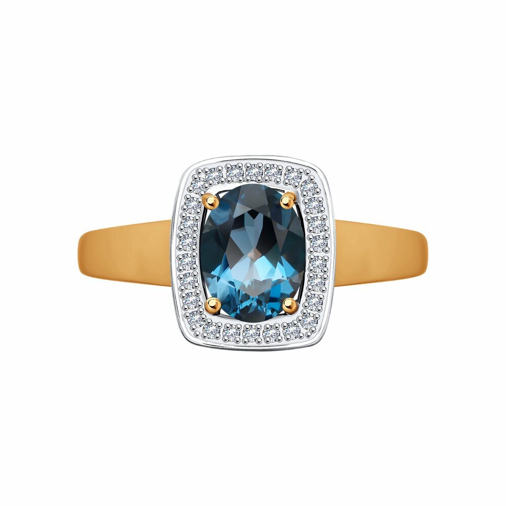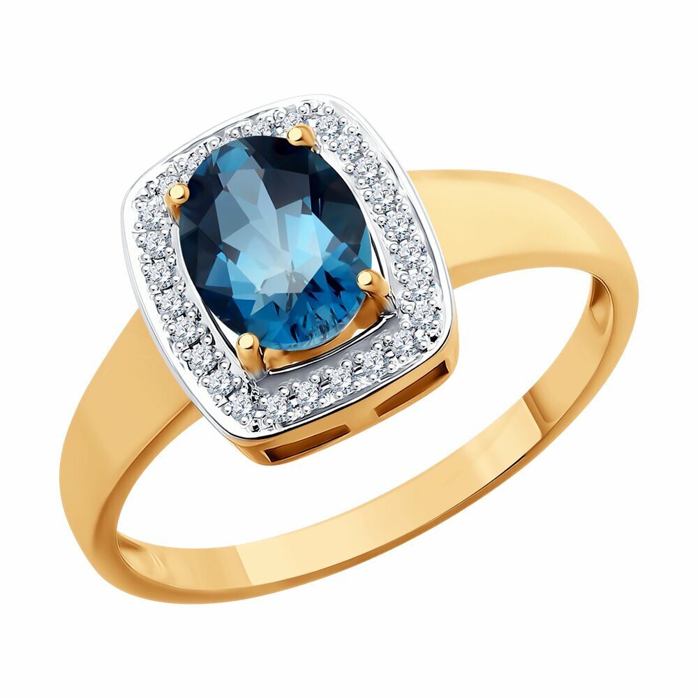 Кольцо SOKOLOV из золочёного серебра с лондон топазом и фианитами 92014549, размер 17