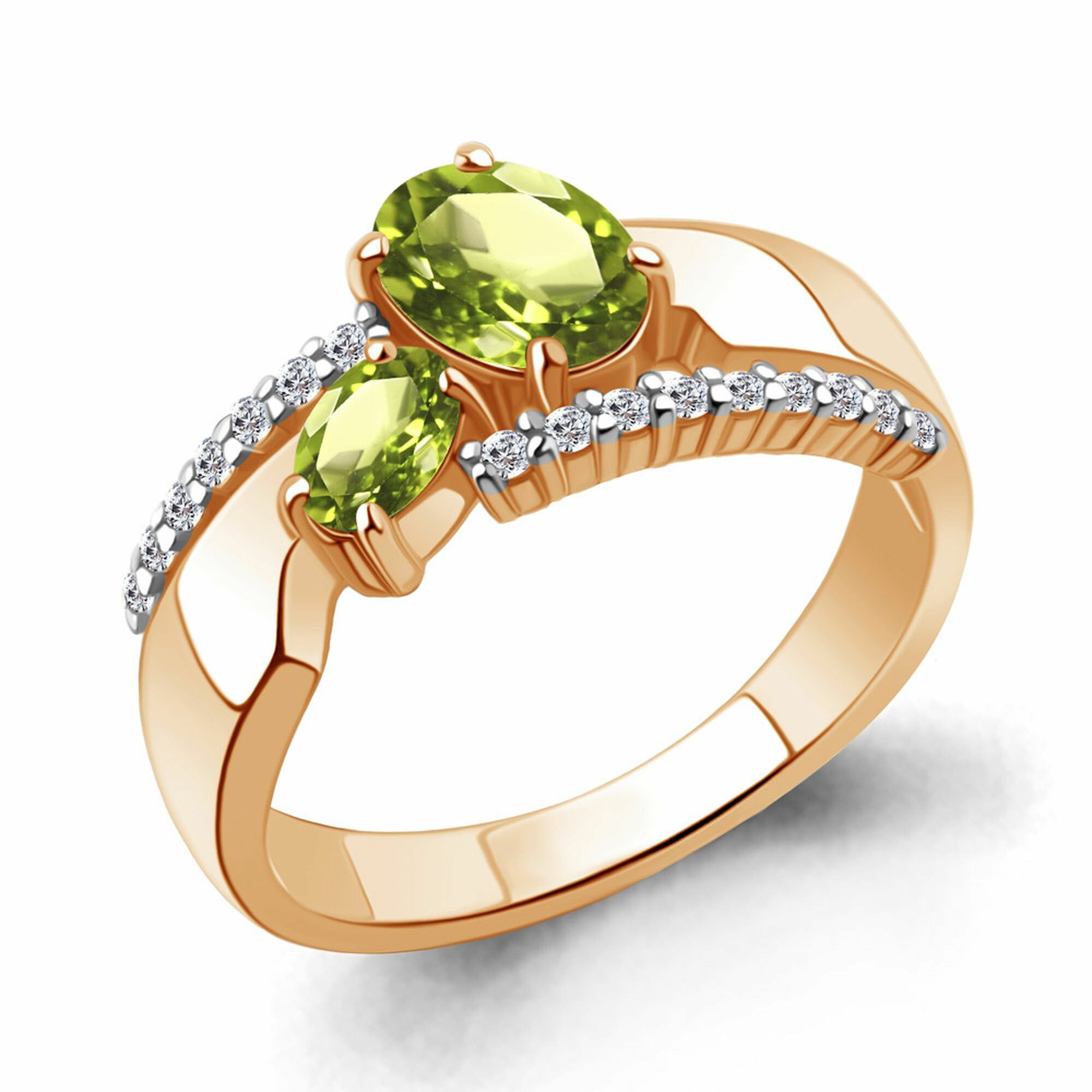Кольцо Diamant online, серебро, 925 проба, золочение, фианит, хризолит, размер 18, темно-зеленый интересное: