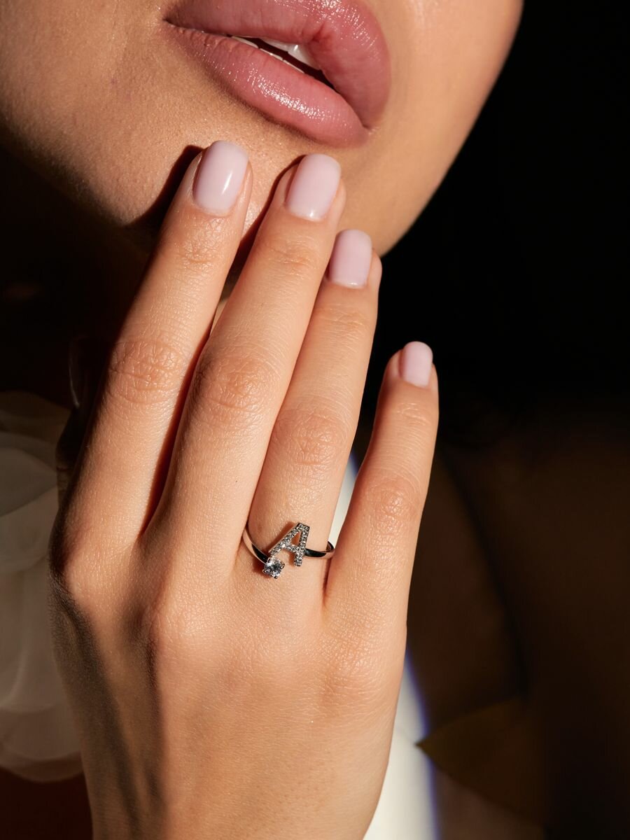 Серебряное кольцо буквы А