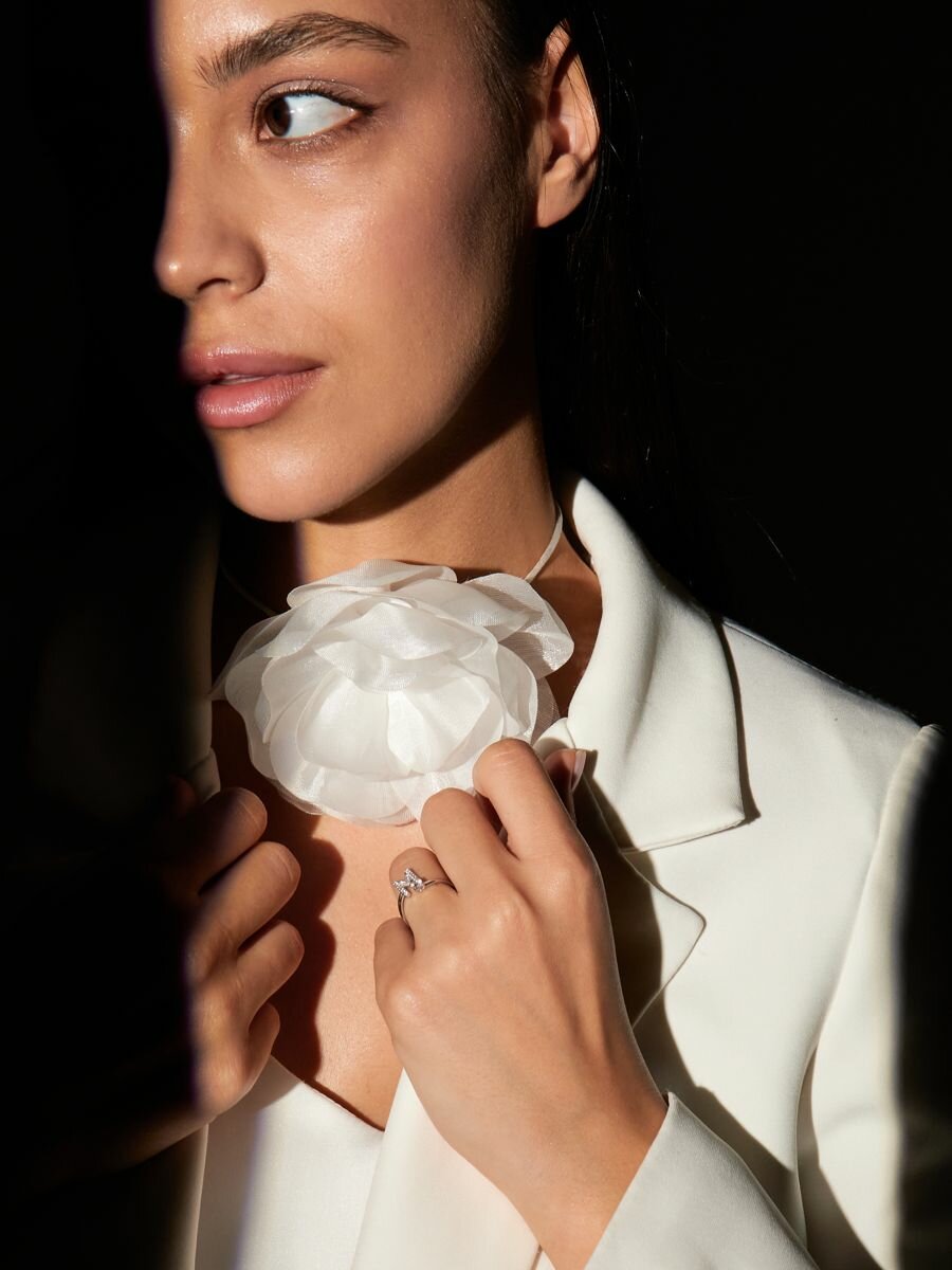 Кольцо SKAZKA Natali Romanovoi, серебро, 925 проба, родирование, фианит, размер 17.5, ширина 1.5 мм, бесцветный