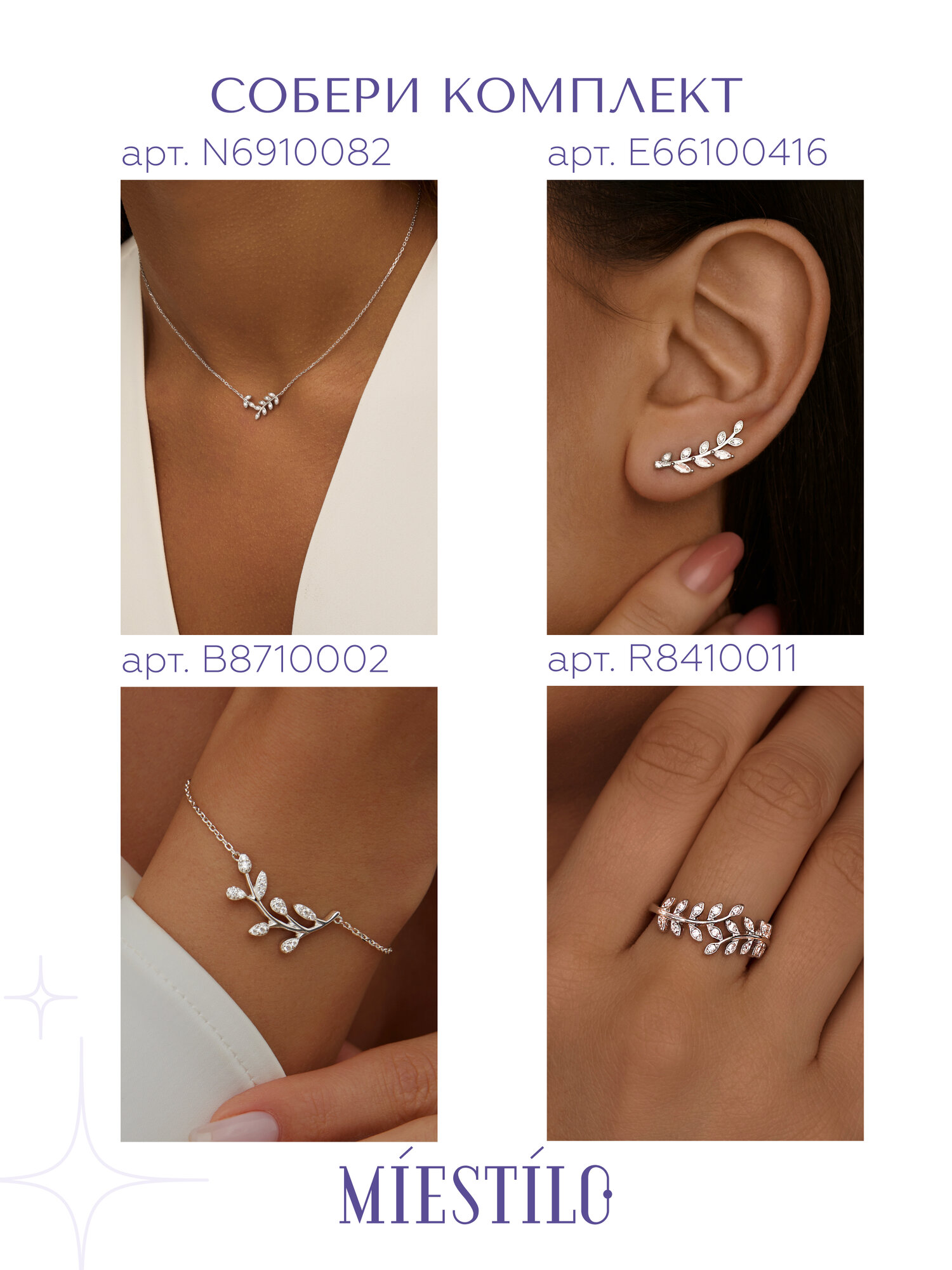 Кольцо ювелирное MIESTILO серебро 925 пробы женское, веточка с фианитами, 18 размер