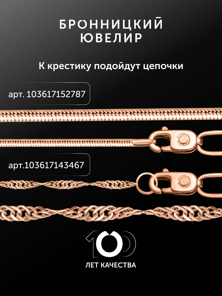 Крестик Бронницкий Ювелир, красное золото, 585 проба, золотистый