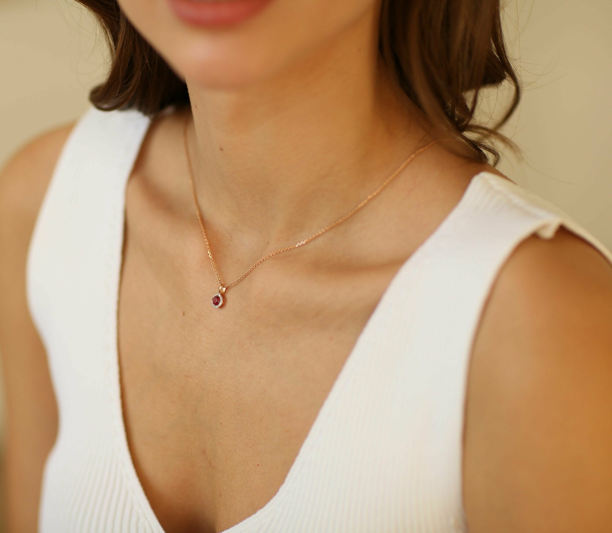 Подвеска VALTERA / красное золото 585 пробы / с рубинами и бриллиантами / подарок девушке женщине маме подруге на день рождения / произведено в России / 113139
