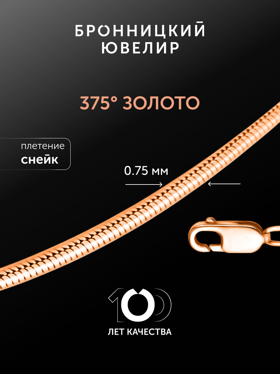 Цепь Бронницкий Ювелир, красное золото, 375 проба, длина 50 см, средний вес 2.58 г, , золотистый