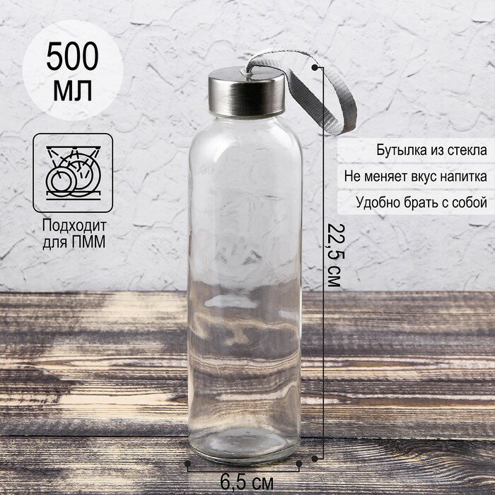 Бутылка для воды «Лидо», стекло, 500 мл, h=22,5 см