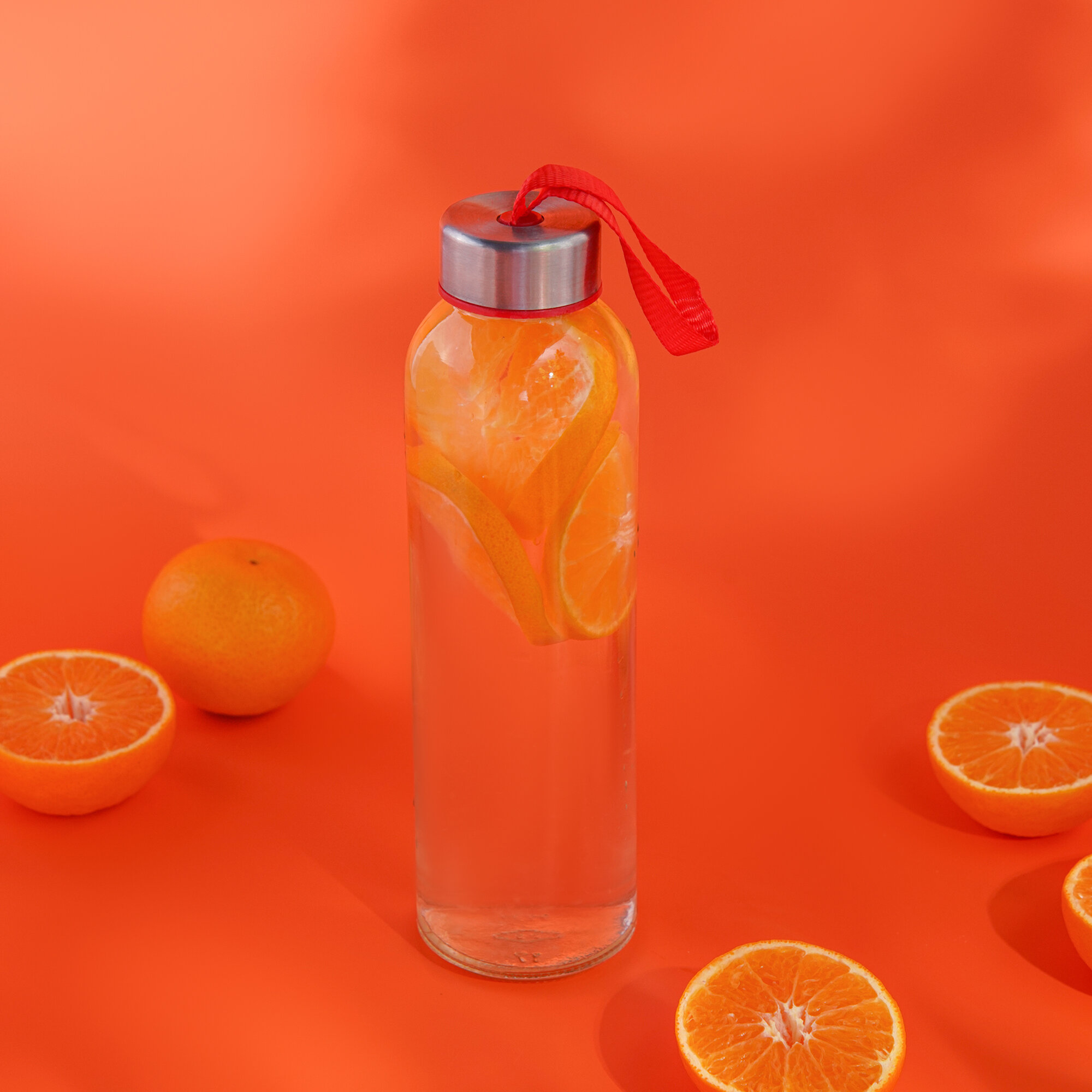 Бутылка для воды стеклянная «Лидо», 400 мл, h=18 см, цвет ремешка микс